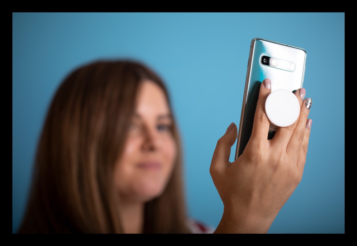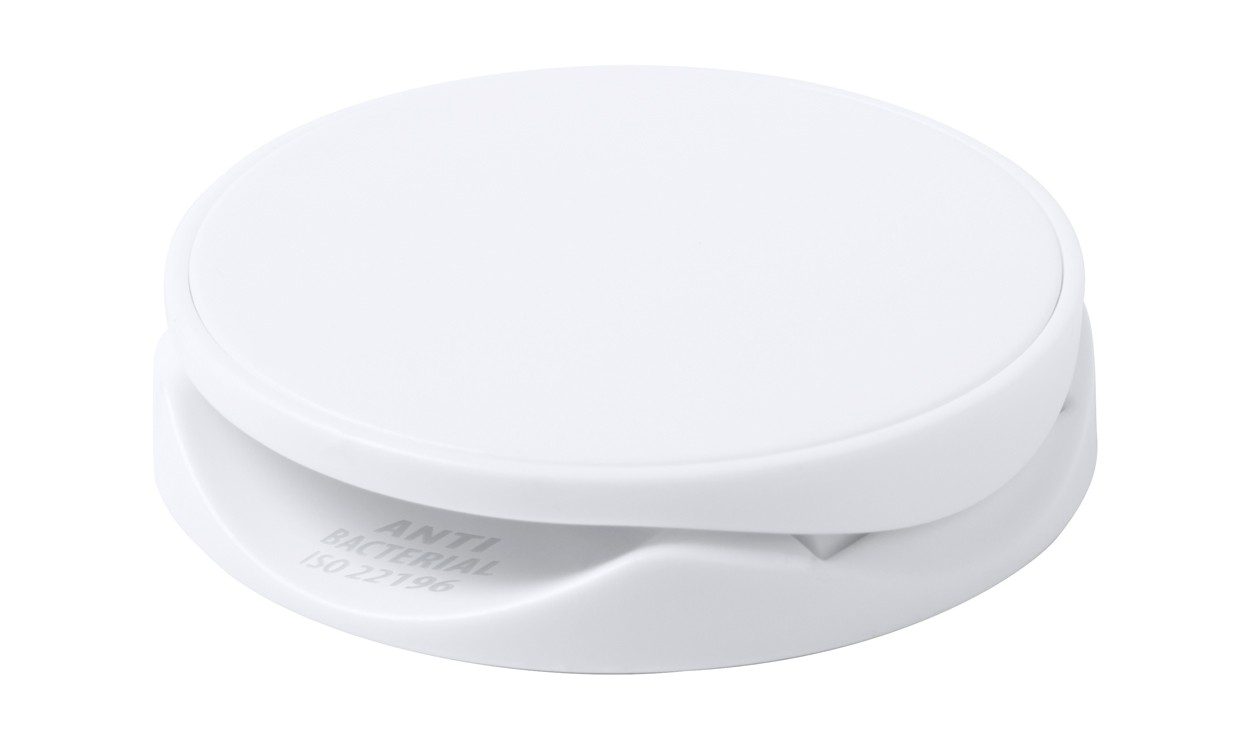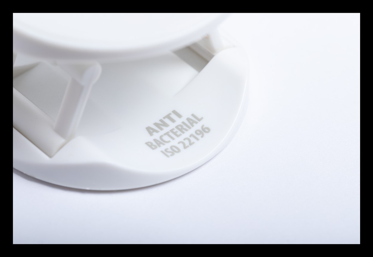 Suport rotund antibacterian pentru telefon mobil, din plastic, cu prindere autoadeziva. Conform ISO 22196.