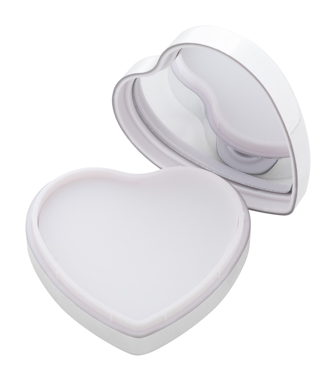Balsam de buze, cu aromă de vanilie, în suport ABS reciclat de culoare metalica, în forma de inima, cu protecție SPF15. Produsul nu conține ingrediente de origine animală.