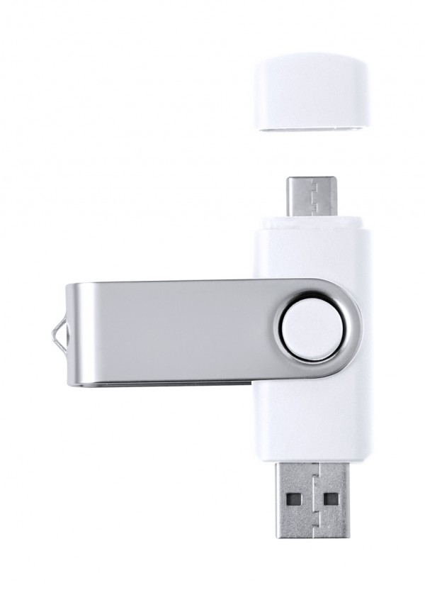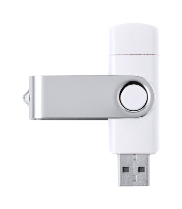 Metal twist OTG USB flash drive with 16 GB memory. With USB and USB-C connections. USB 3.0.
