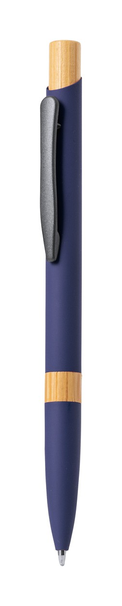 Pix din aluminiu, cu detalii din bambus, clemă metalică, finisaj cauciucat și mină albastră.