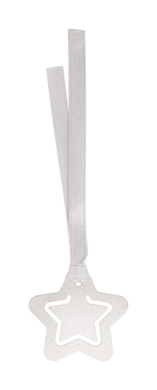 Semn de carte din otel inoxidabil, cu panglica argintie.
