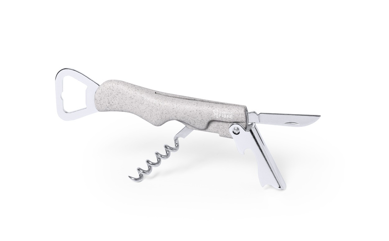 Tirbușon cu deschizător de sticle și tăietor de capsule. În plastic din fibră de bambus ecologică și oțel inoxidabil.