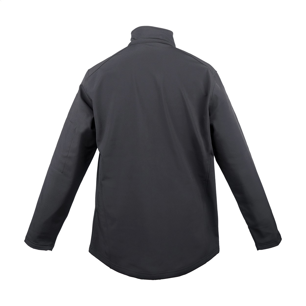 Jacheta softshell, cu trei straturi, respirabilă, rezistentă la vânt și impermeabilă, cu fermoar, cu buzunare laterale și pe mâneci. Exterior: 92% poliester și 8% elastan cu membrană respirabilă. Interior: 100% poliester micro polar fleece. Produs marca Legend Classics.