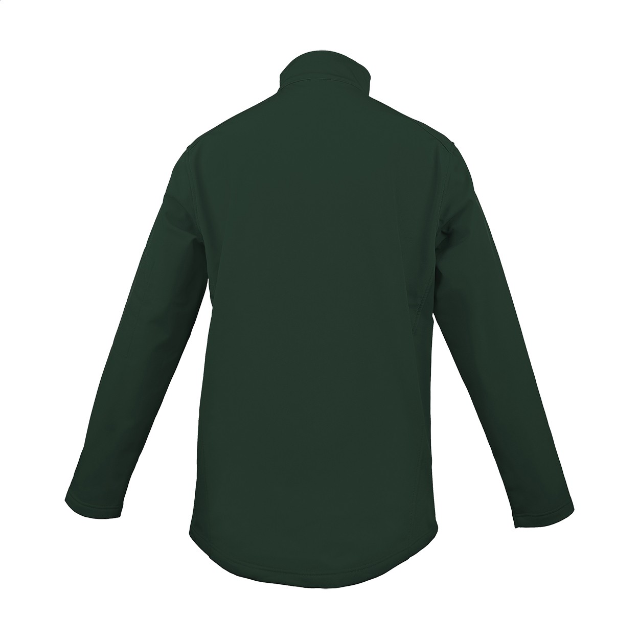 Jacheta softshell, cu trei straturi, respirabilă, rezistentă la vânt și impermeabilă, cu fermoar, cu buzunare laterale și pe mâneci. Exterior: 92% poliester și 8% elastan cu membrană respirabilă. Interior: 100% poliester micro polar fleece. Produs marca Legend Classics.