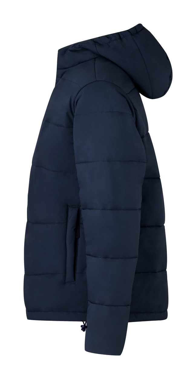 Jachetă parka căptușită, rezistentă la vânt și la apă, cu fermoar frontal dublu și închidere cu nasturi. Cu glugă și buzunare laterale. 100% Poliester.