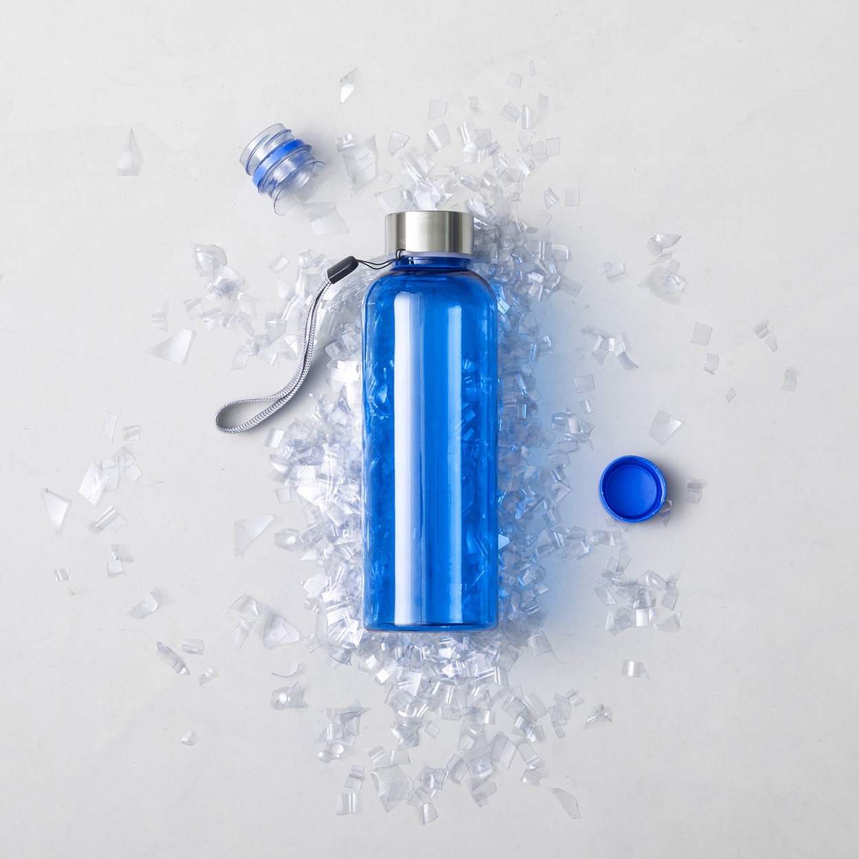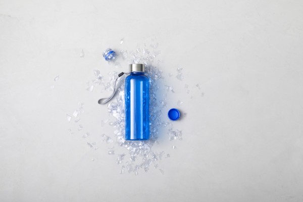 Sticlă sport din plastic PET fără BPA, cu capac din oțel inoxidabil și curea de transport, 600 ml. Nu este potrivit pentru băuturi carbogazoase.