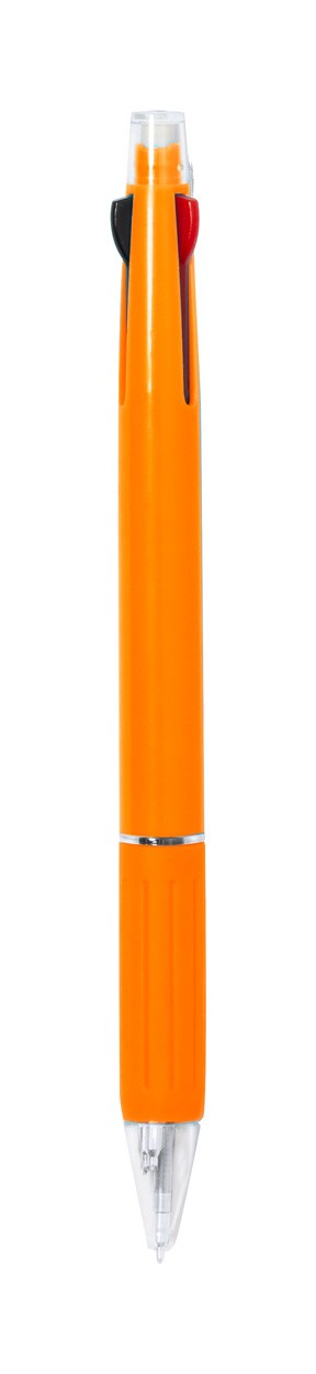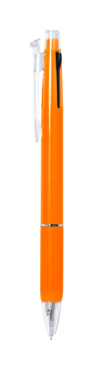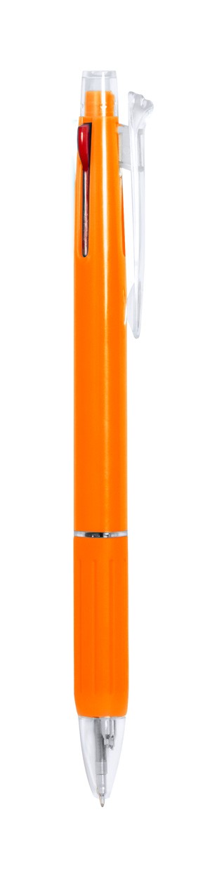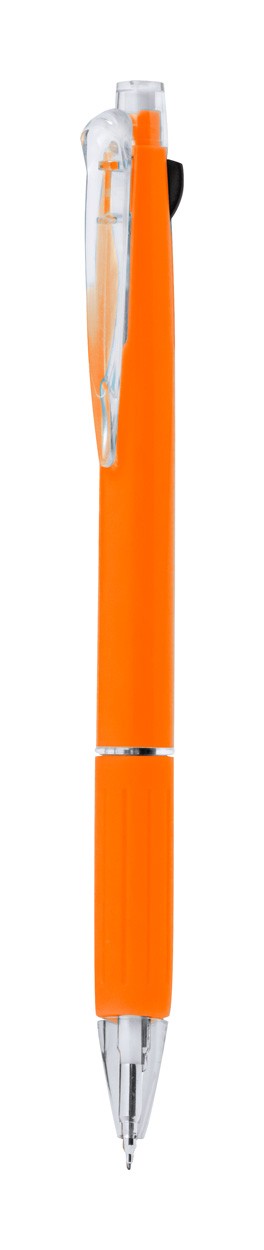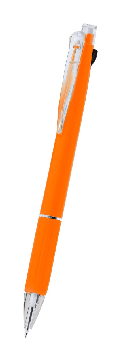 Plastic ballpoint pen with transparent details, blue and black refills. Including mechanical pencil with 0,7 mm lead.
