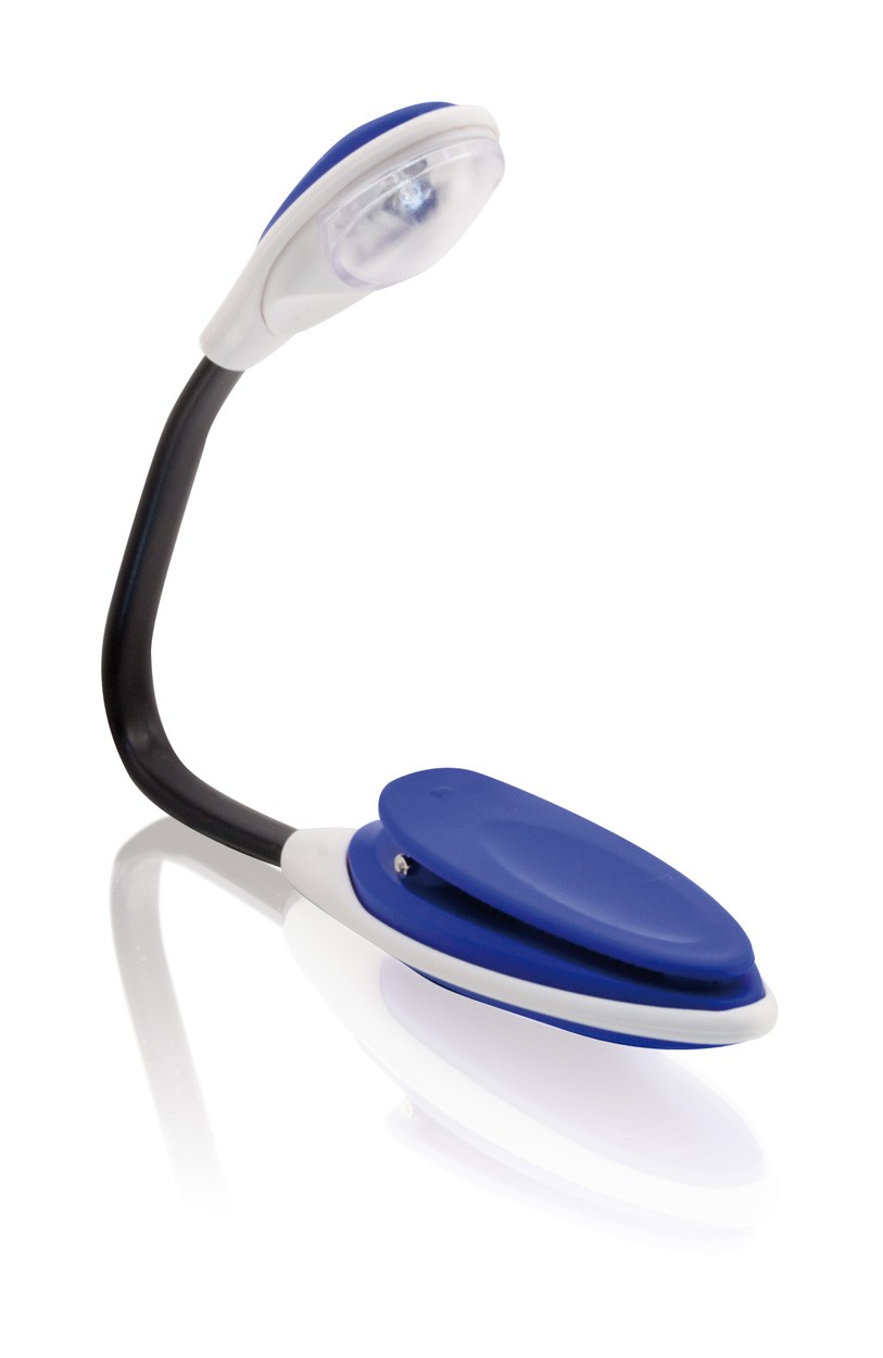 Lampă pentru citit cu clips. Se livrează cu baterii.