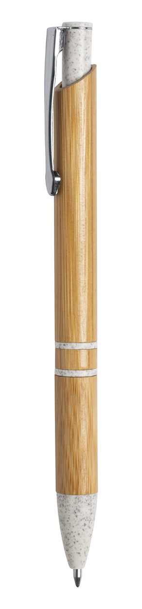 Pix din bambus cu vârf și buton din plastic ecologic din paie de grâu, clips din metal. Mină albastră.