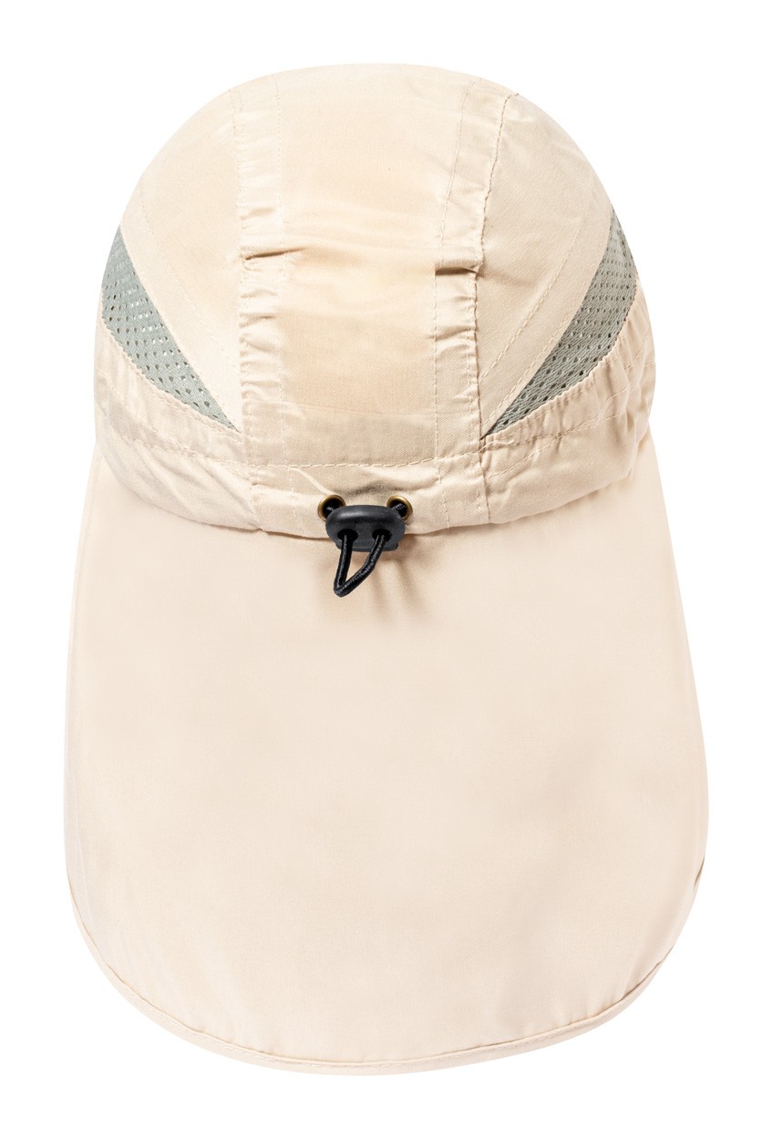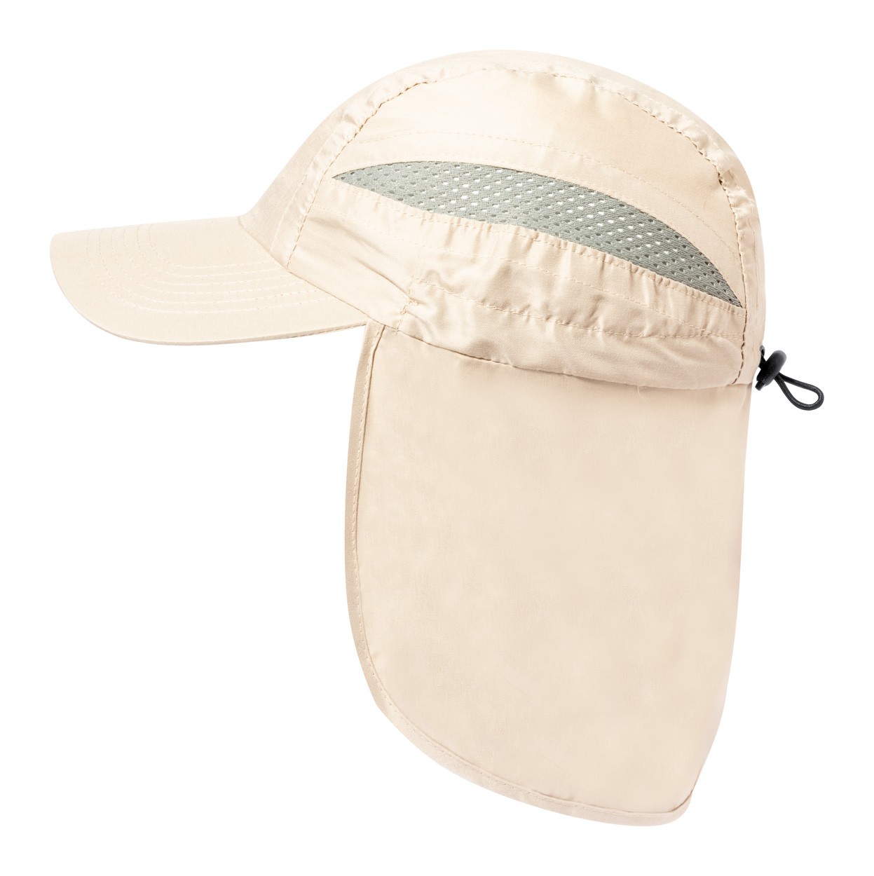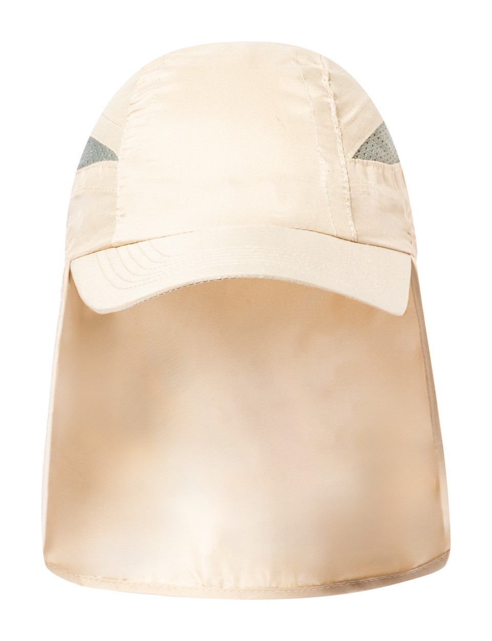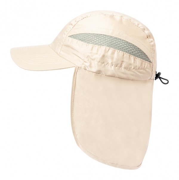Microfibre baseball cap with 7 panels, elastic closure and neck flap.