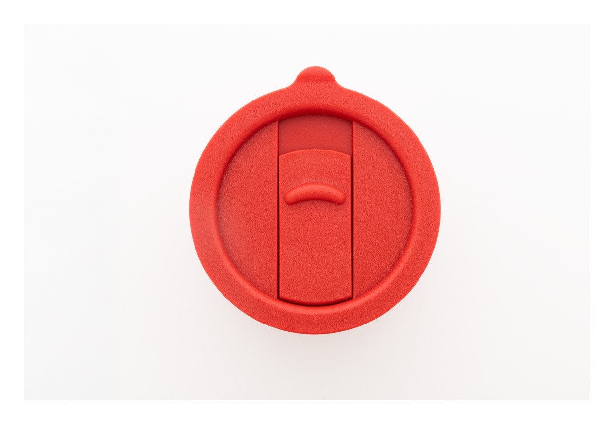 Cană de călătorie, din ceramică, acoperită cu silicon, cu capac de băut din plastic PP. 300 ml.