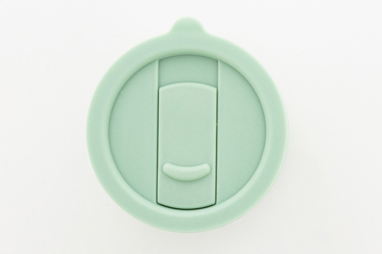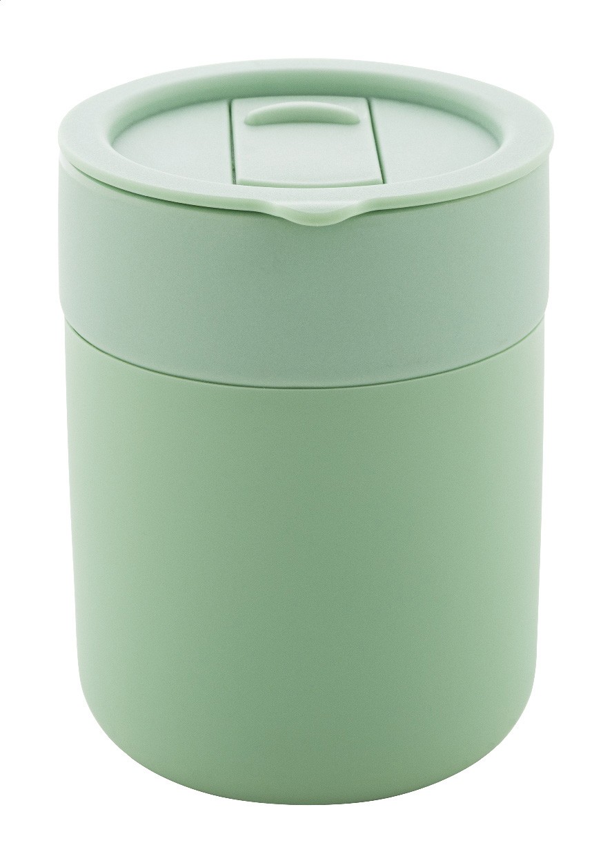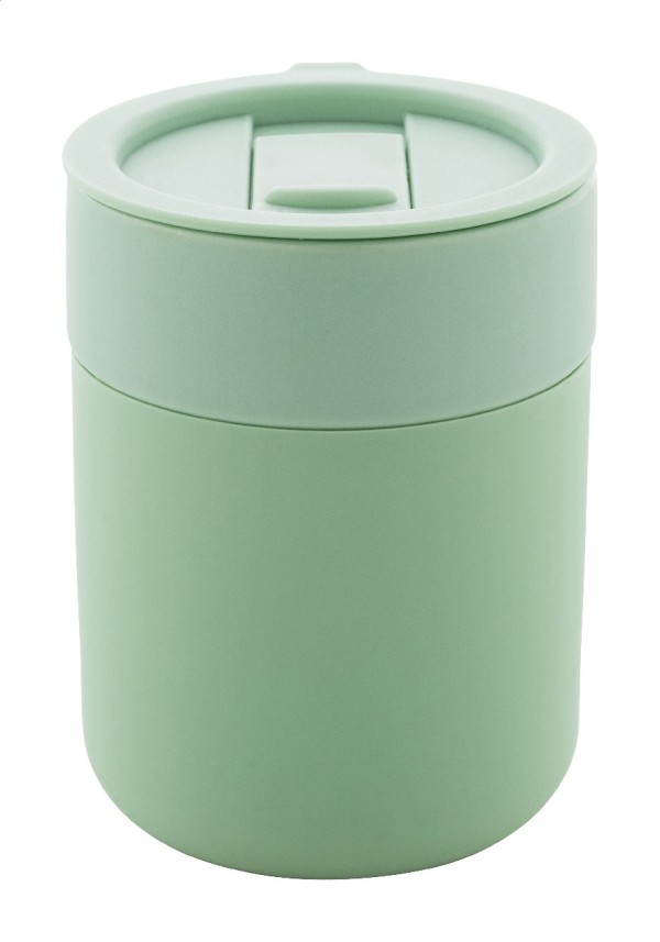 Cană de călătorie, din ceramică, acoperită cu silicon, cu capac de băut din plastic PP. 300 ml.