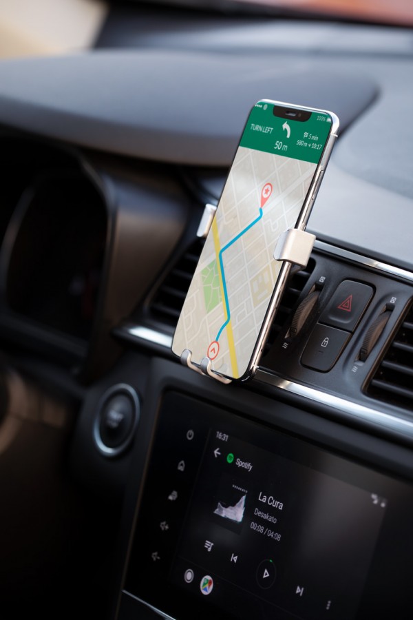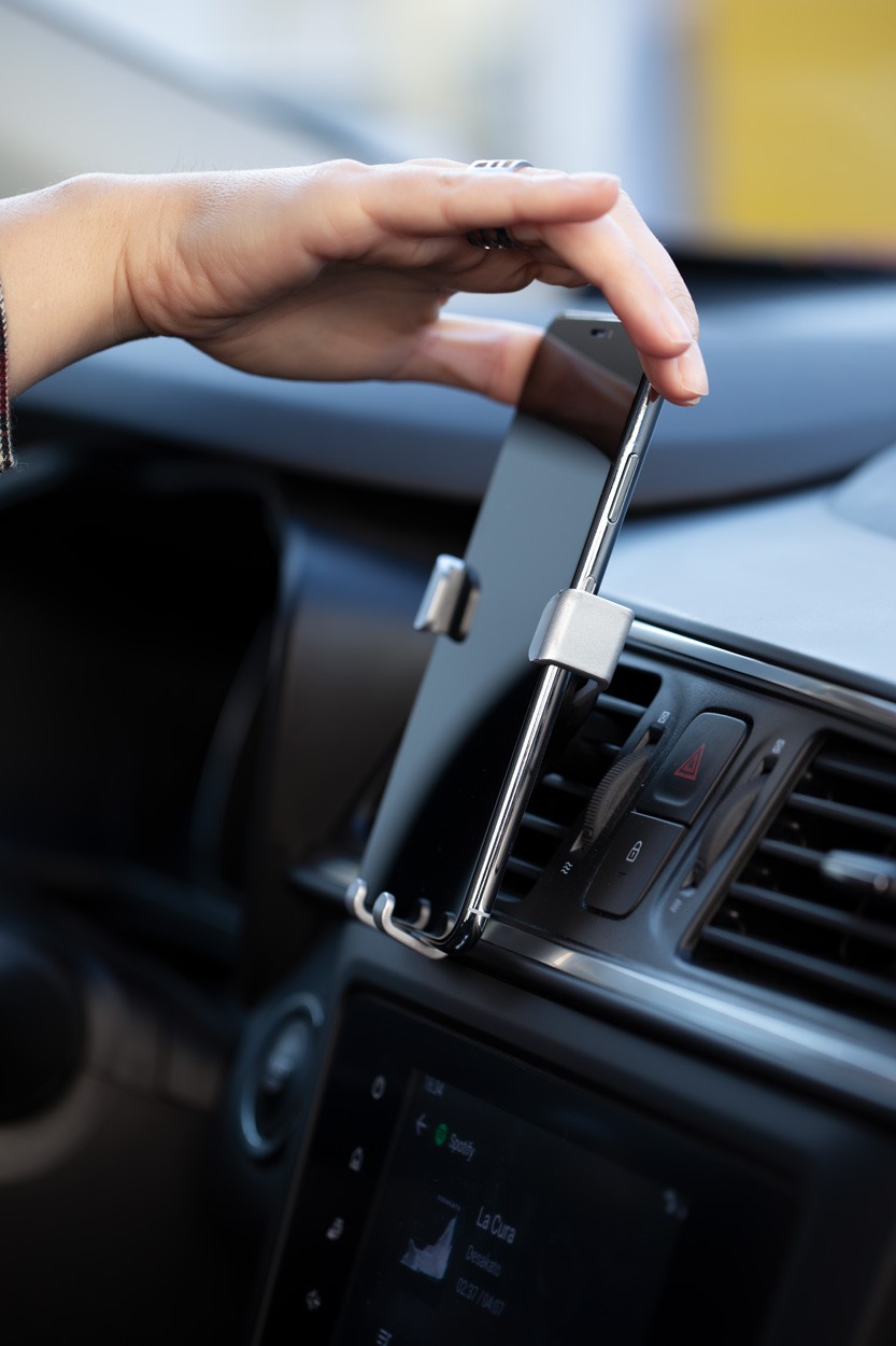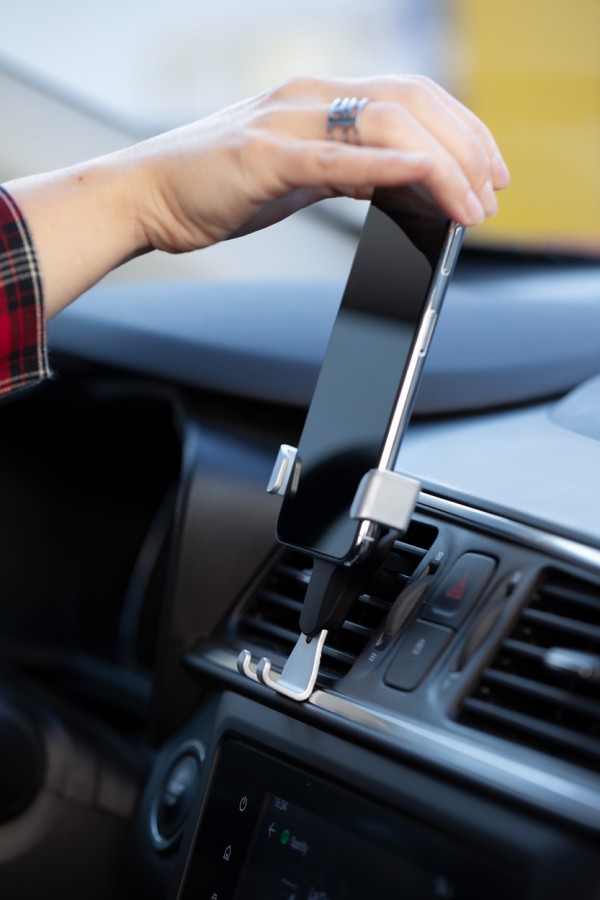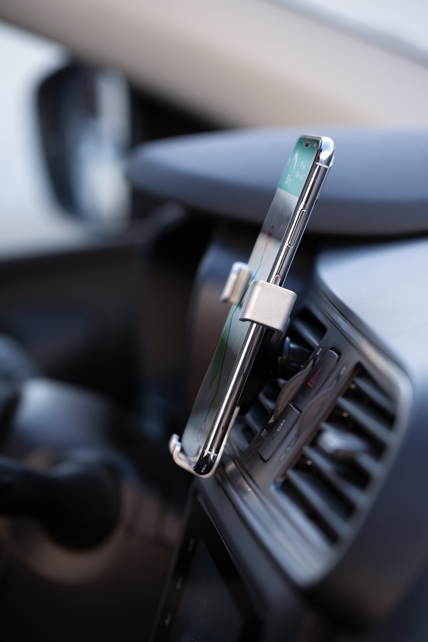 Suport telefon mobil auto cu montare pe aerisire. Pentru smartphone-uri de dimensiuni XXL. Cu sistem universal de fixare pe bază de gravitație.