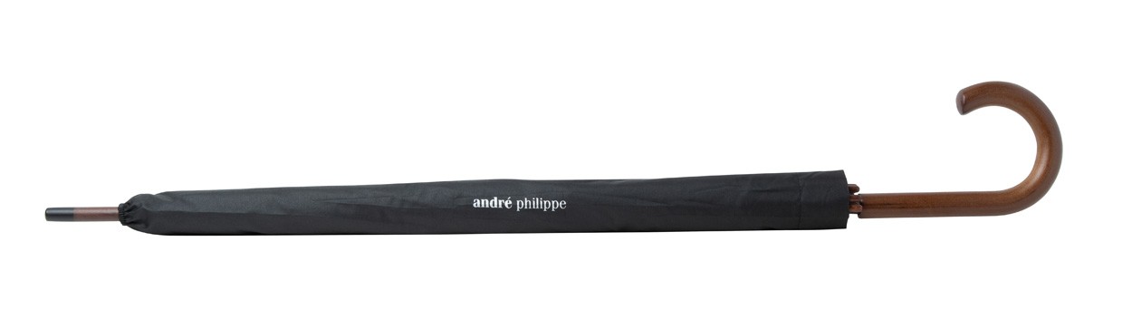 Umbrelă automată antivânt, cu 8 panele, mâner, ax și vârf din lemn, cadru metalic și spițe din fibră de sticlă. Pongee PET reciclat 190T. Cu etichetă distinctă RPET. În cutie de cadou marca André Philippe.