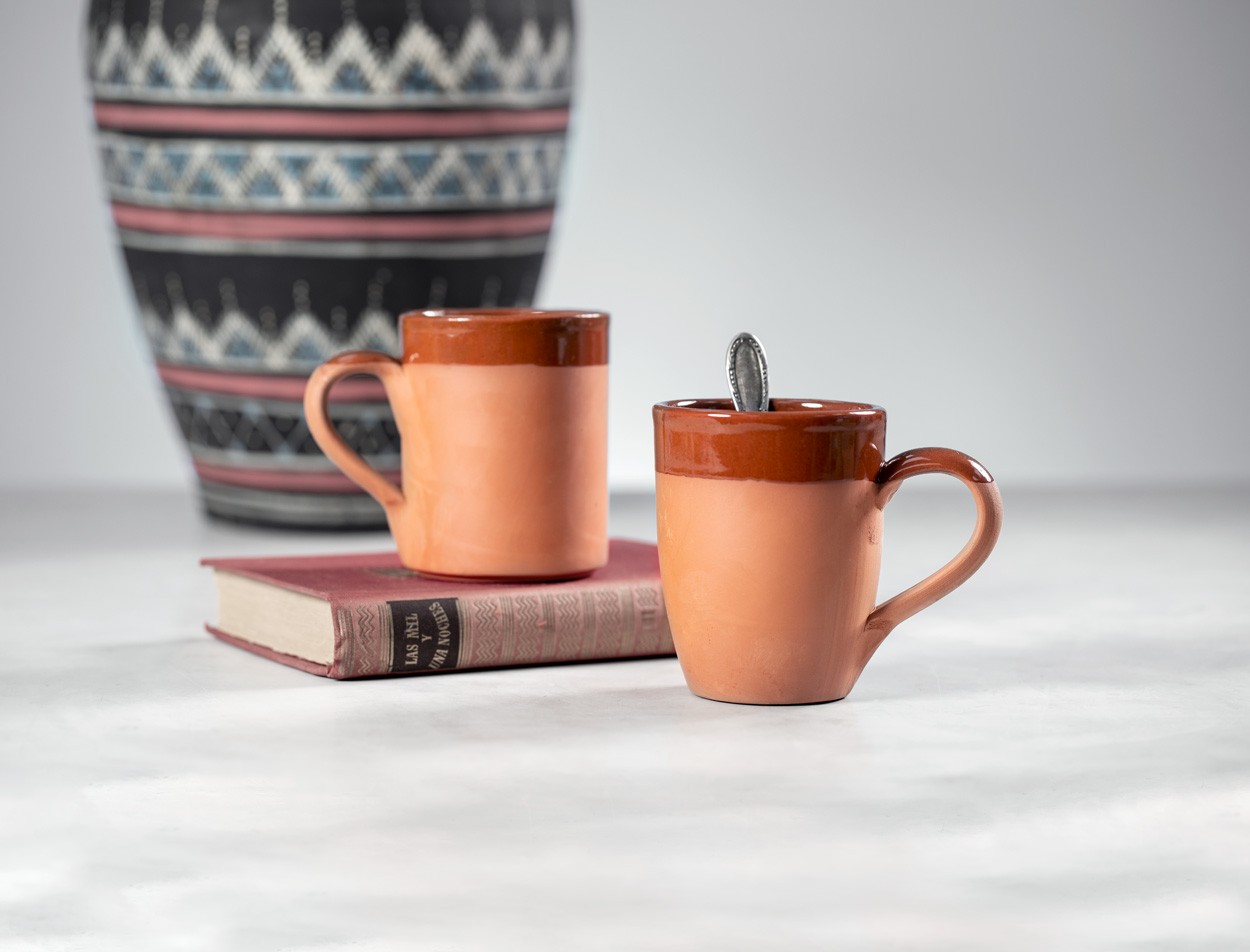 Cană din lut lucrată manual, cu finisaj exterior parțial glazurat, 330 ml. În cutie de hârtie kraft.