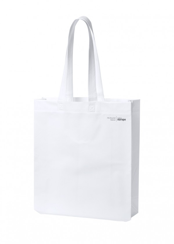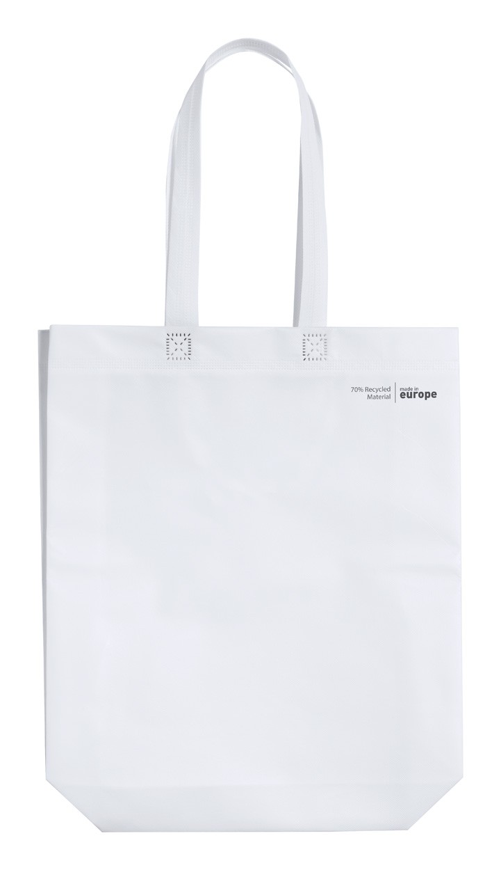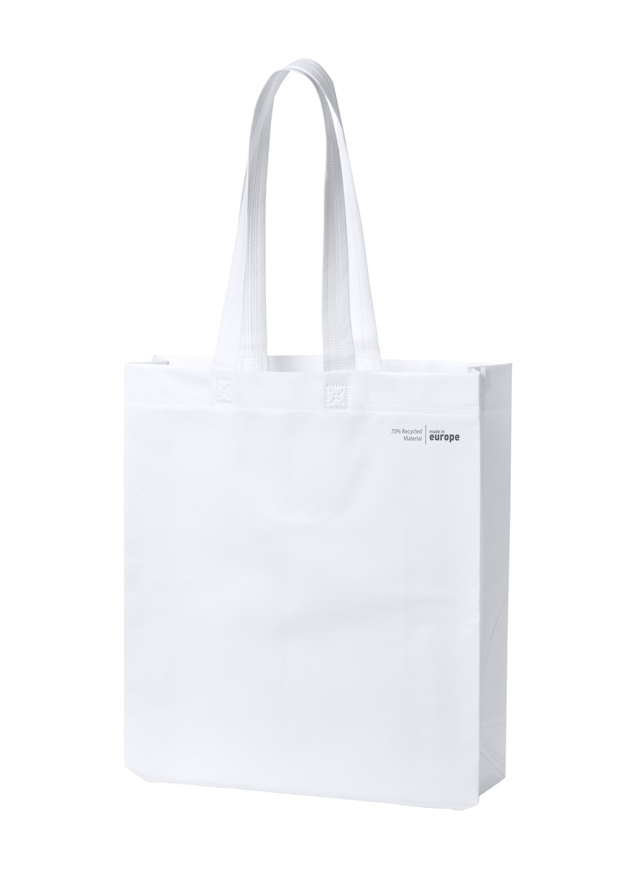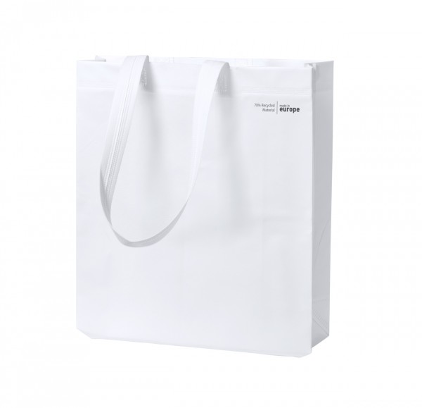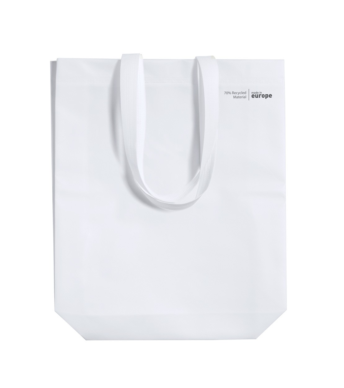 Sacoșă de cumpărături, din material nețesut laminat, cu burduf, mânere lungi și finisaj termosigilat, 120 g/m². Fabricat din material 70% reciclat.