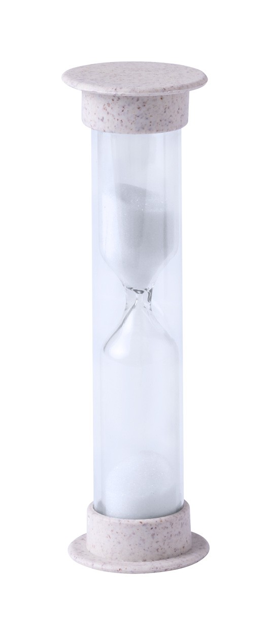 Set stomatologic, care include periuță de dinți, din bambus și clepsidră din plastic din paie de grâu, cu nisip, de 2 minute, în husă de bumbac cu fermoar.