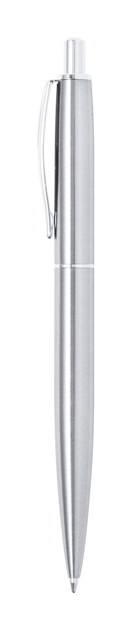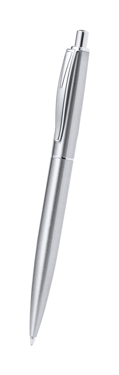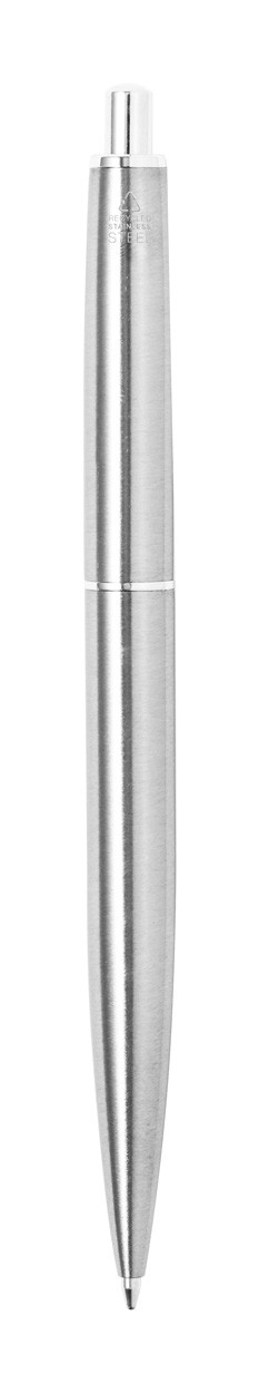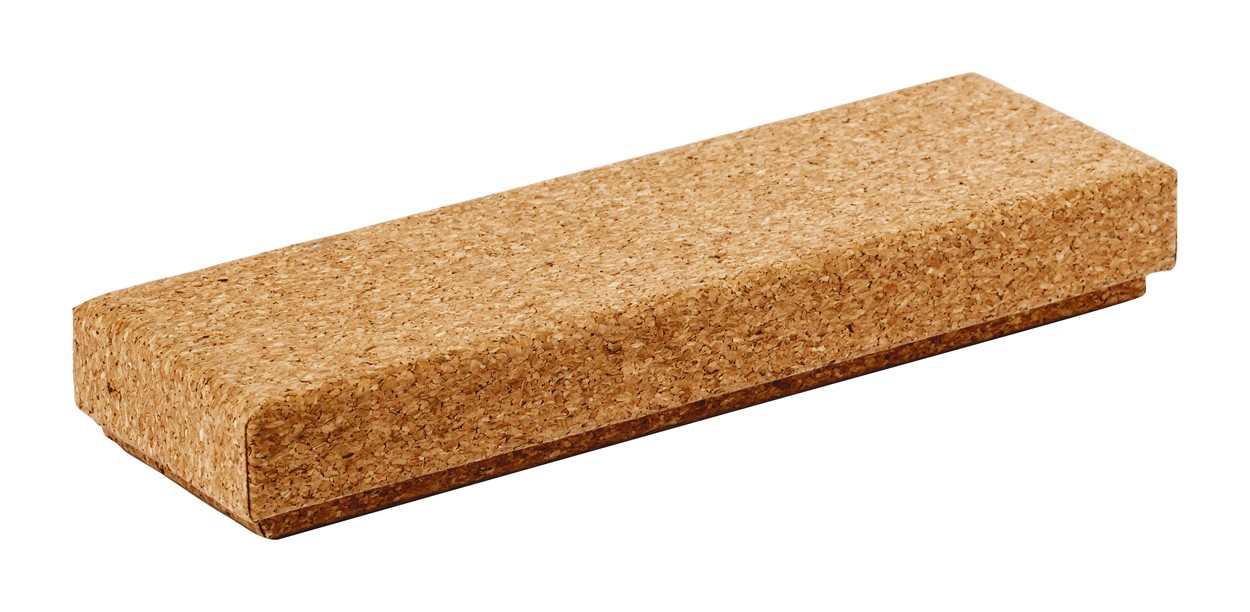 Pix din oțel inoxidabil reciclat, cu mină albastră. În cutie cadou din plută naturală.