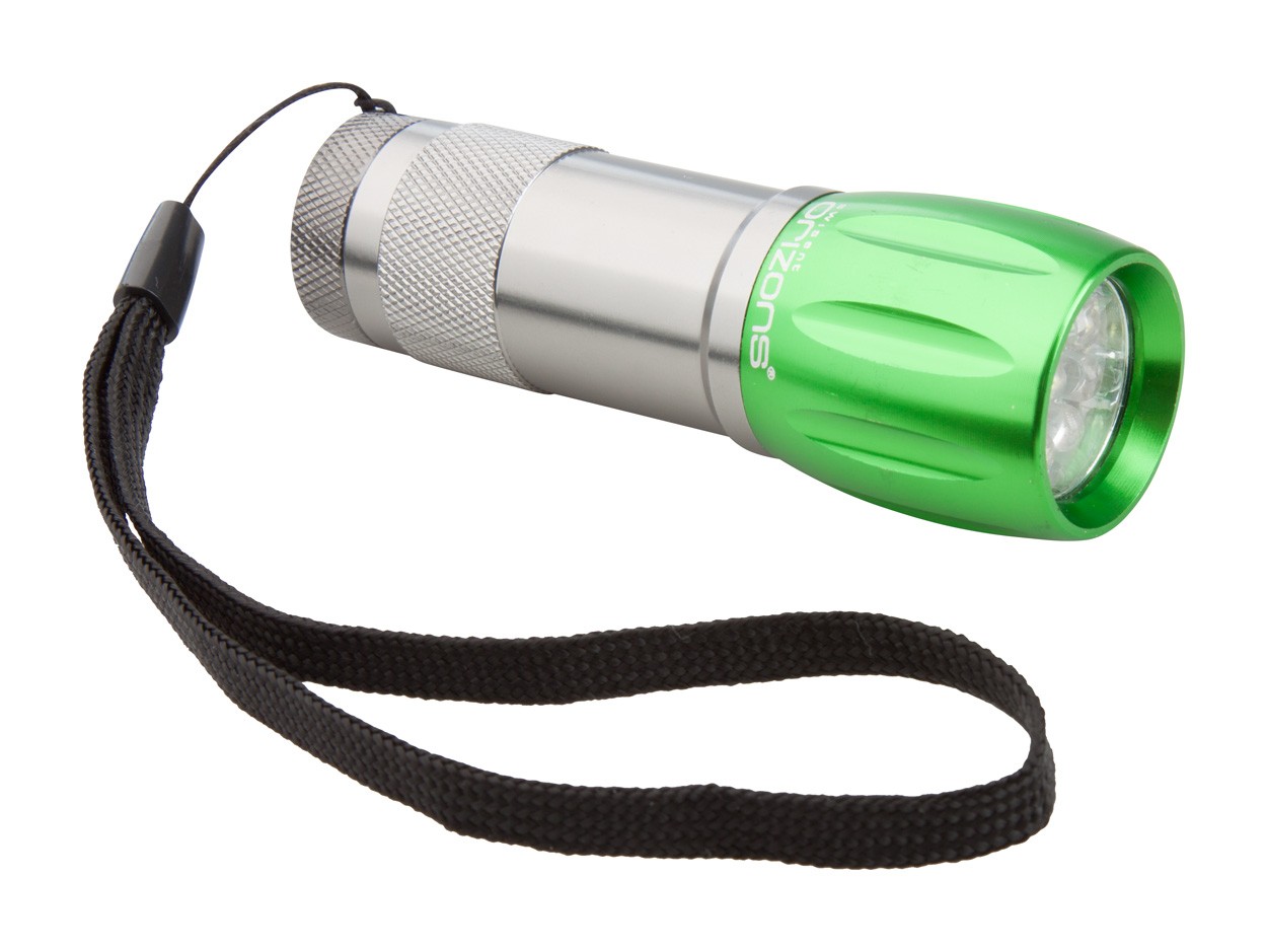 Lanternă din aluminiu cu 9 LED-uri. Funcționează cu 3 baterii AAA/RO. Se livrează fără baterii. Marca Orizons.