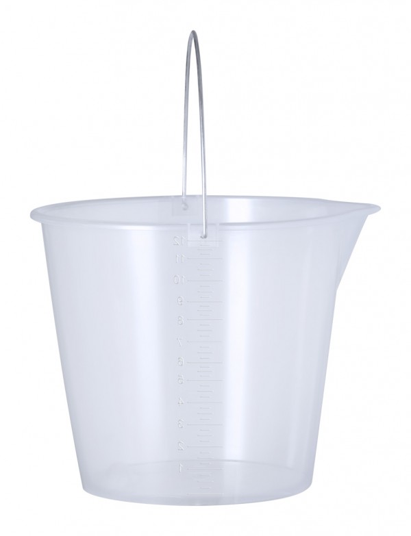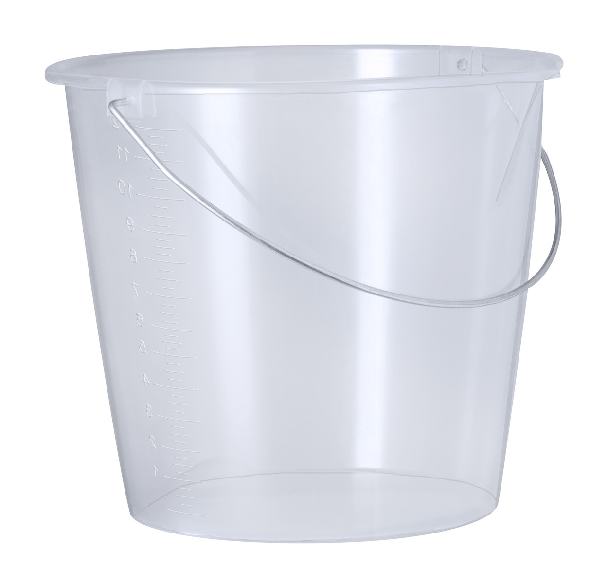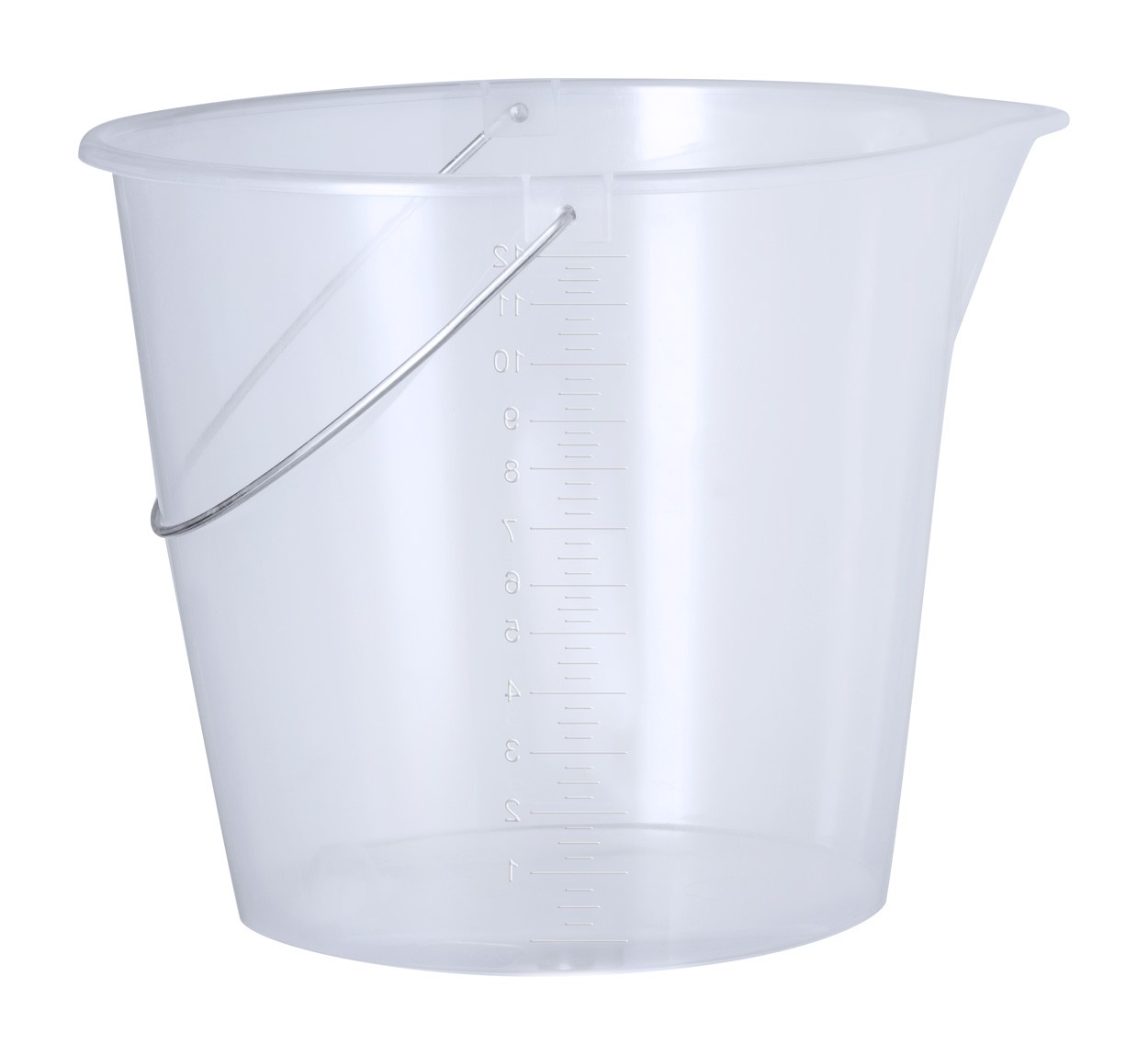 Bucket made of durable transparent PP with metal handle and side measuring cup. 12L
