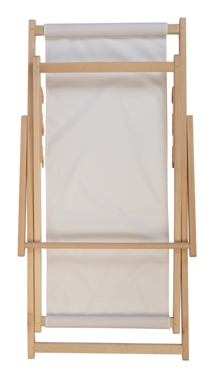 Şezlong din lemn, cu material poliester 600D RPET, imprimat prin sublimare. Pretul include imprimarea prin sublimare. Limita de greutate: 100 kg. MOQ: 5 buc.