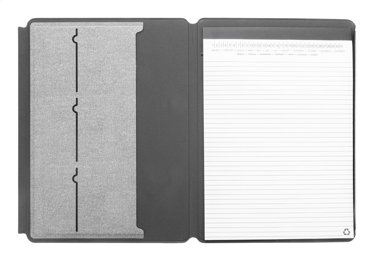 Dosar pentru documente de dimensiune A4, cu coperta din piele PU reciclată, cu buzunare interioare pentru organizare și închidere magnetică. Cu blocnotes cu 20 de foi dictando din hârtie reciclată.