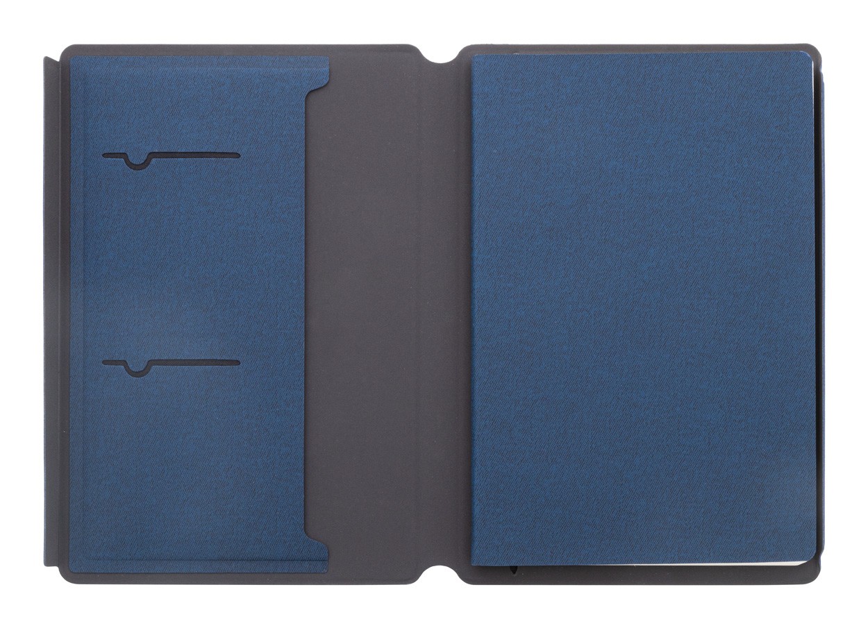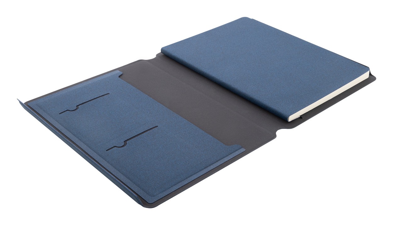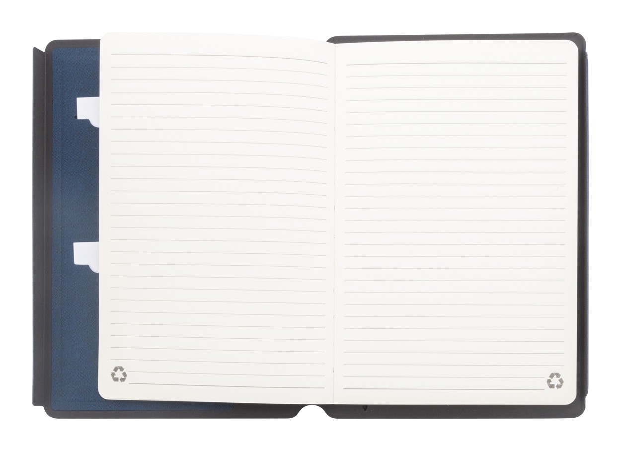 Dosar pentru documente de dimensiune A5, cu coperta din piele PU reciclată, cu buzunare interioare pentru organizare și închidere magnetică. Cu blocnotes cu 64 de foi dictando din hârtie reciclată.