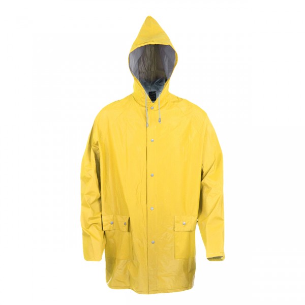 Geacă de ploaie cu glugă și capse, PVC.