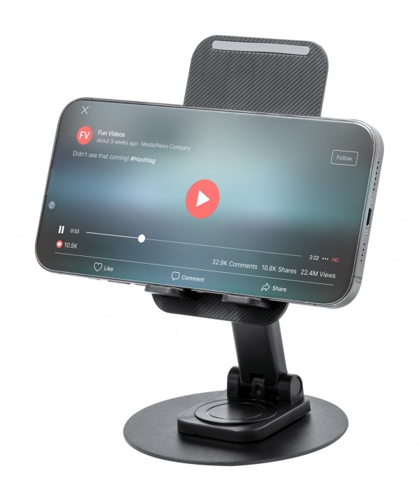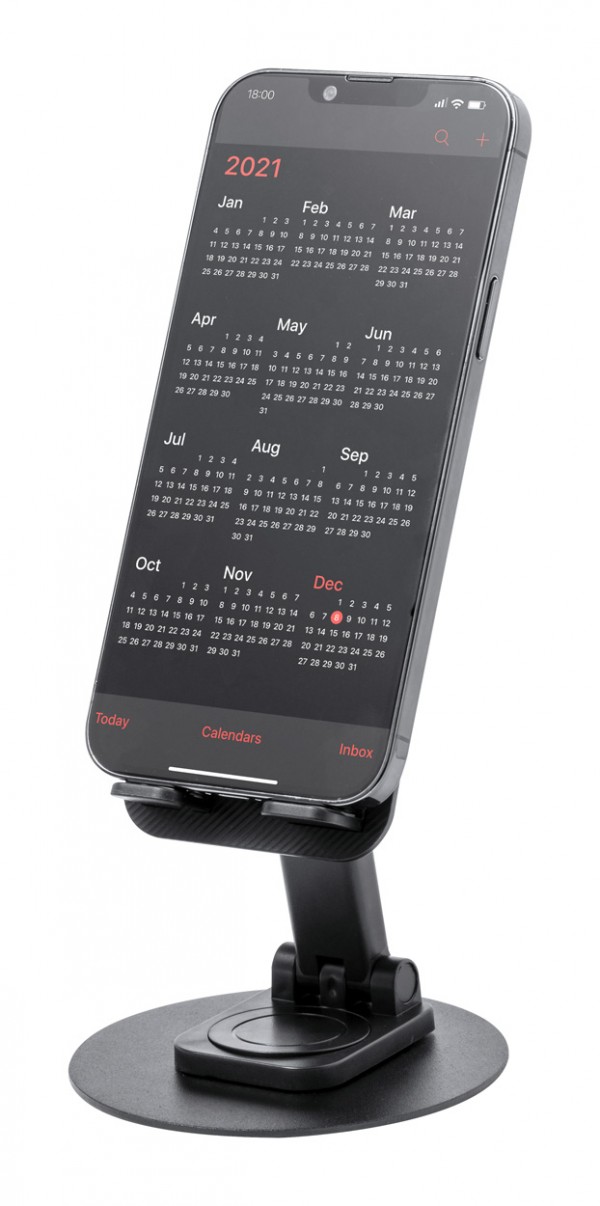 Foldable desk mobile holder in ABS plastic and aluminium, with adjustable height.