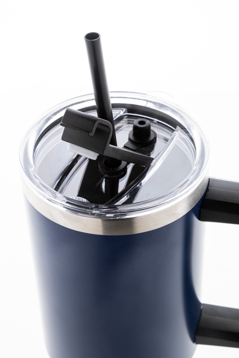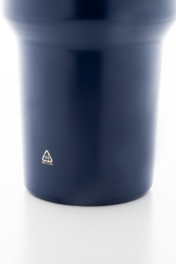 Cană termoizolată, din oțel inoxidabil reciclat, cu perete dublu, cu capac de băut PS și pai din PP. 1200 ml.