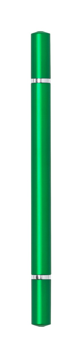 Pix 2 în 1 din plastic ABS cu un vârf de pix si vârf de pix fără cerneală, cu finisaj metalic și capac. Cu mină jumbo albastră și vârf din aliaj metalic, care oxidează hârtia. Acest stilou scrie în mod similar cu un creion și este, de asemenea, șters.
