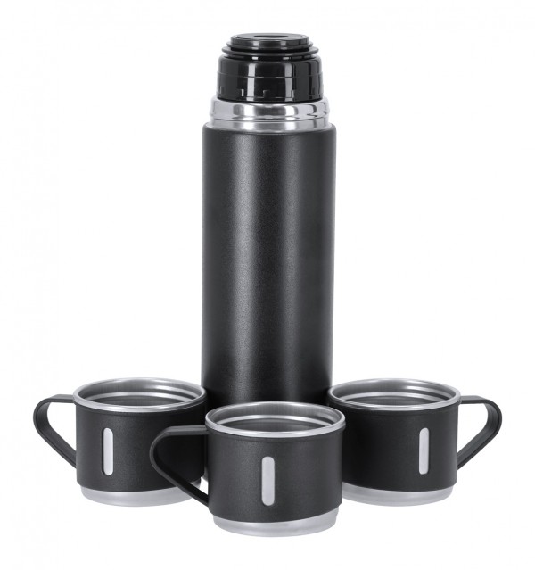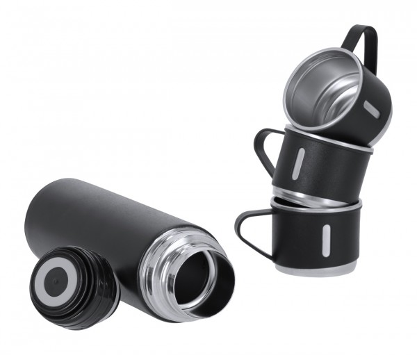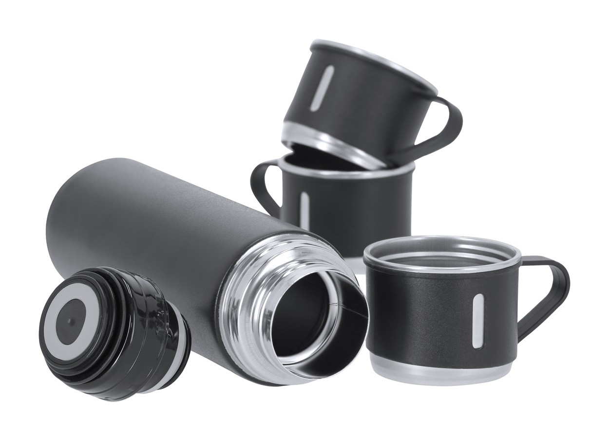 Termos din oțel inoxidabil, cu perete dublu, 420 ml. Cu 3 căni din oțel inoxidabil, 140 ml. Izolația menține băuturile calde timp de 6 ore și reci timp de 15 ore.