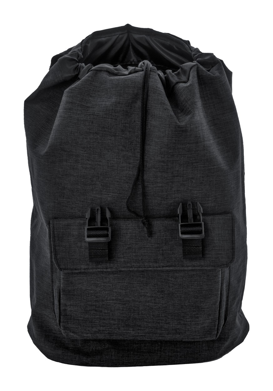 Rucsac RPET, cu cataramă și închidere cu șnur, buzunar frontal cu velcro, compartiment pentru laptop (15"), spate și curele de umăr căptușite. Poliester 300D RPET cu etichetă RPET distinctă.