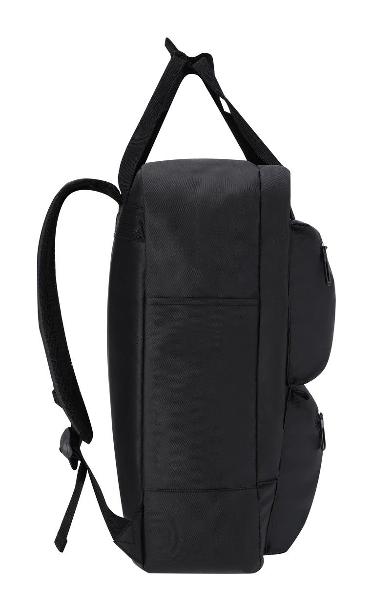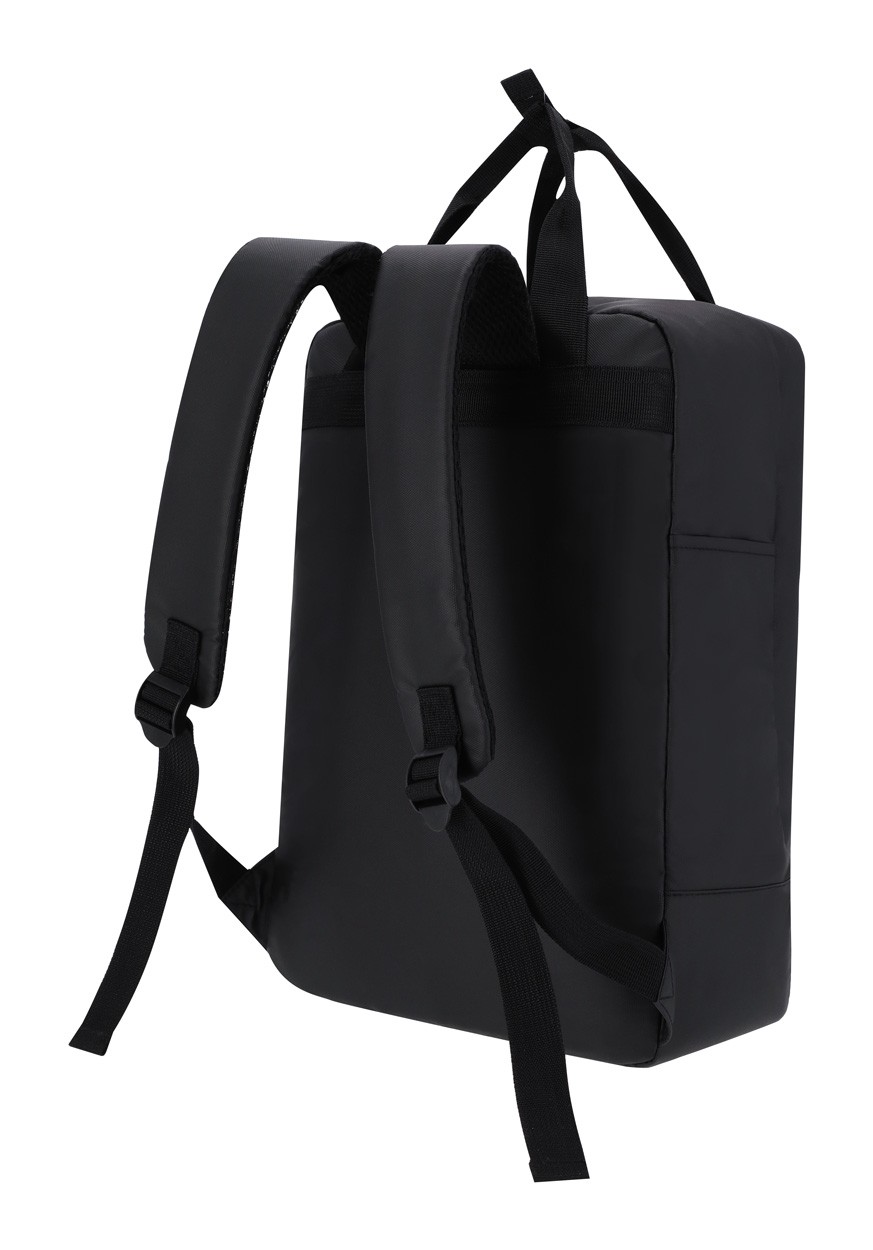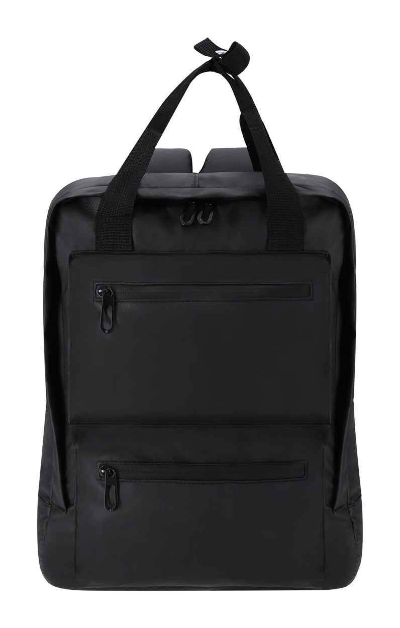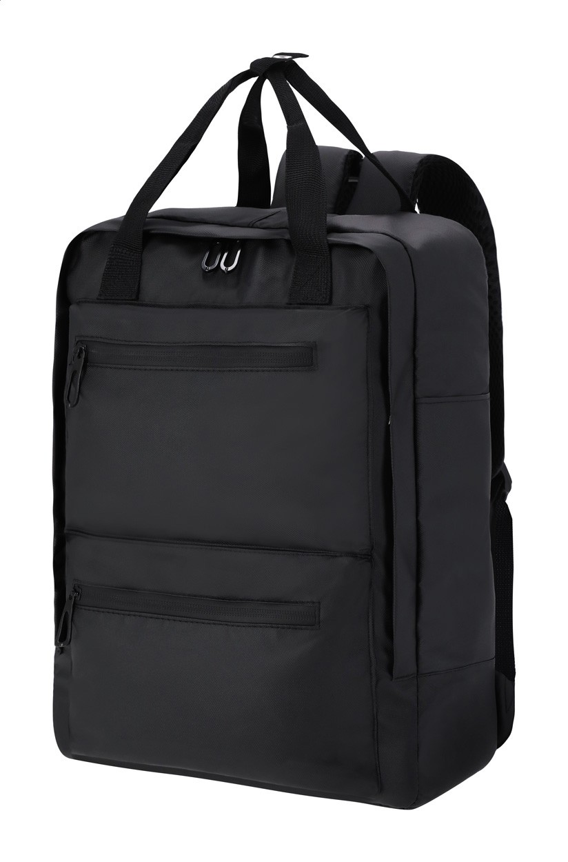 Rucsac din piele PU, soft, cu compartiment cu fermoar și buzunare frontale, compartiment căptușit pentru laptop (15") și tabletă (10"), spate și bretele căptușite.