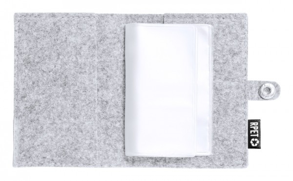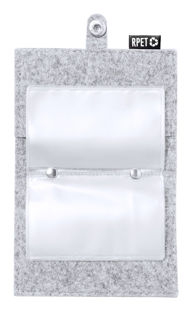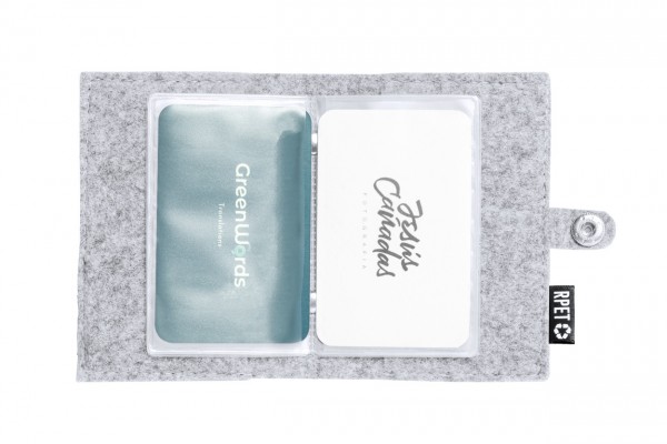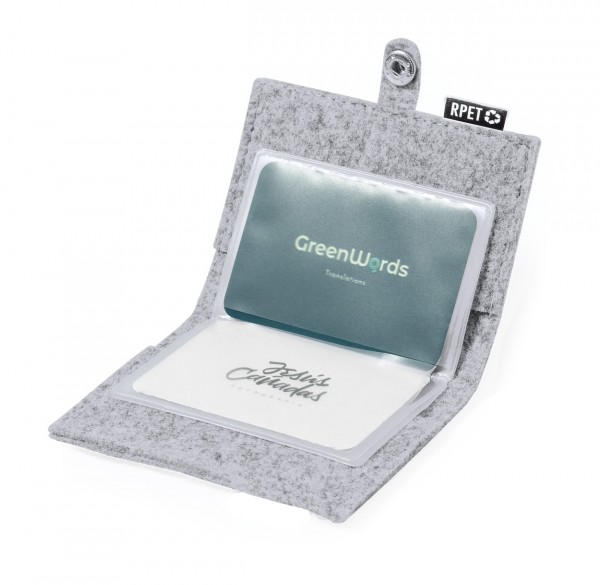 Suport pentru carduri de credit, din fetru RPET, cu închidere cu butoane și 6 compartimente. Cu etichetă distinctivă RPET.