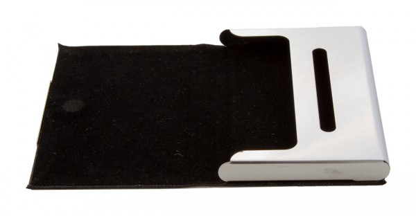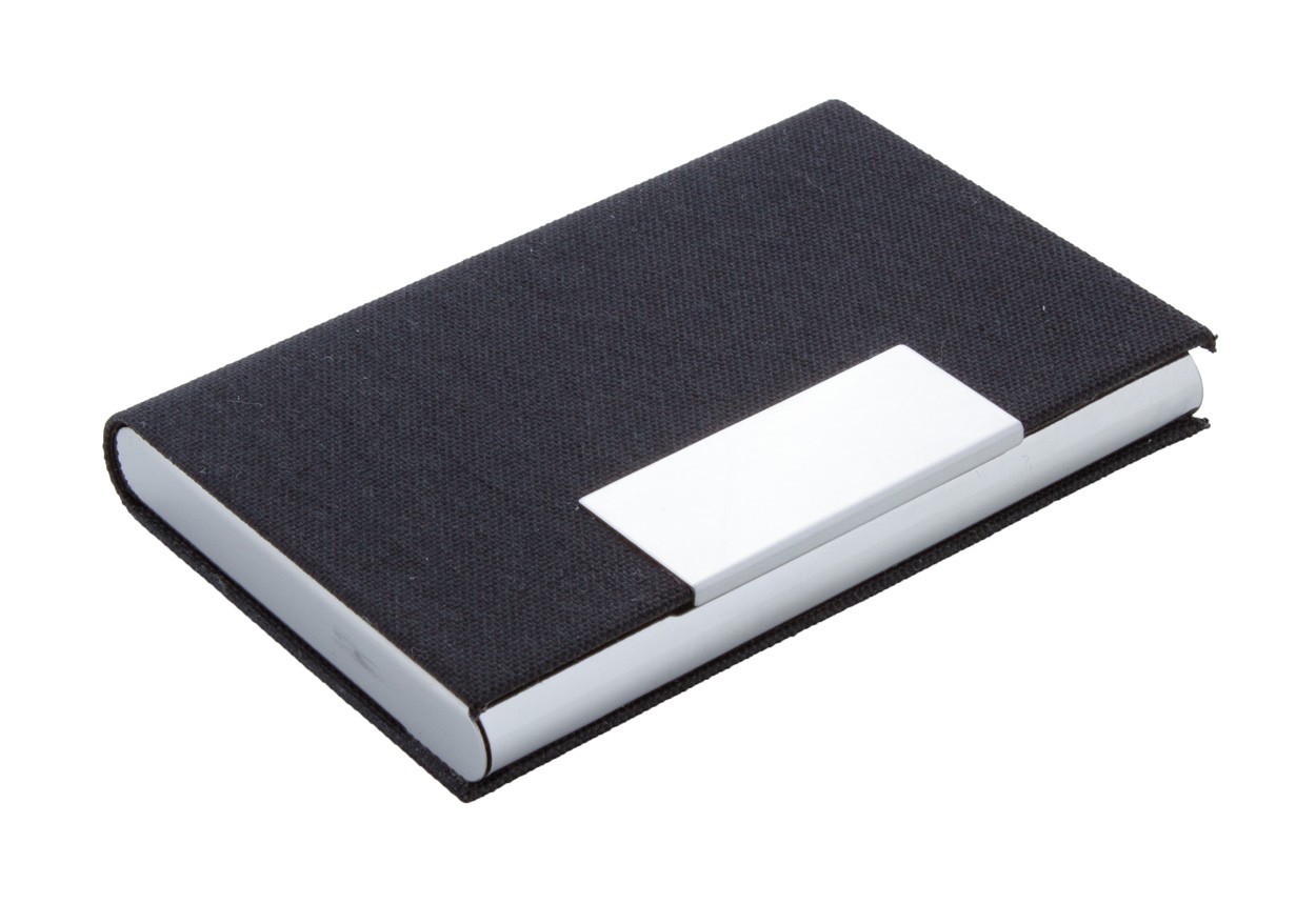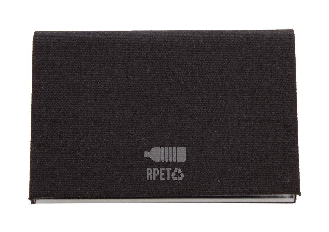 Suport pentru cărți de vizită, din metal, acoperit cu poliester RPET cu parte metalică imprimabilă.