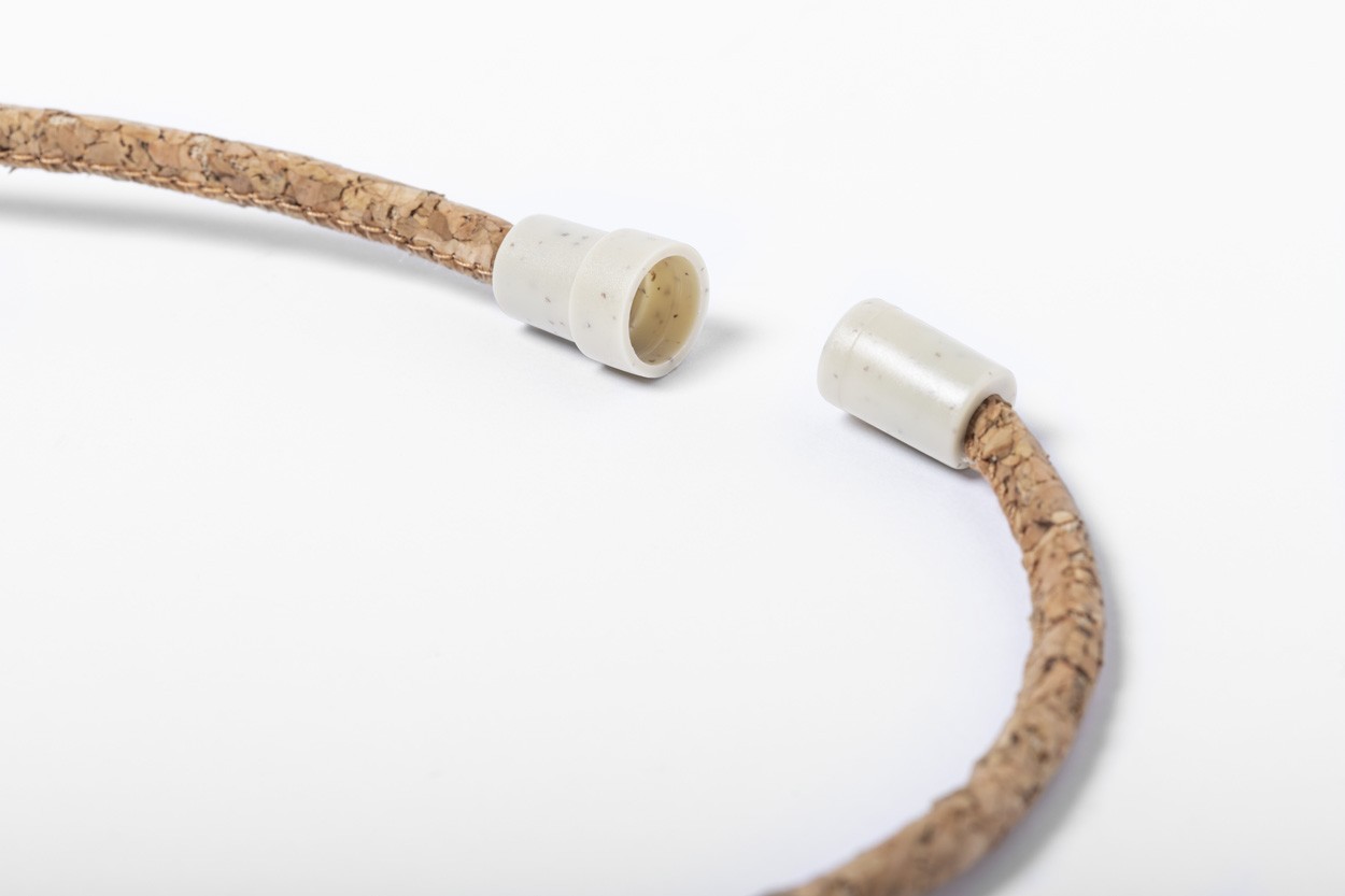 Lanyard din plută cu carabină metalică și cataramă de siguranță din plastic de paie de grâu.