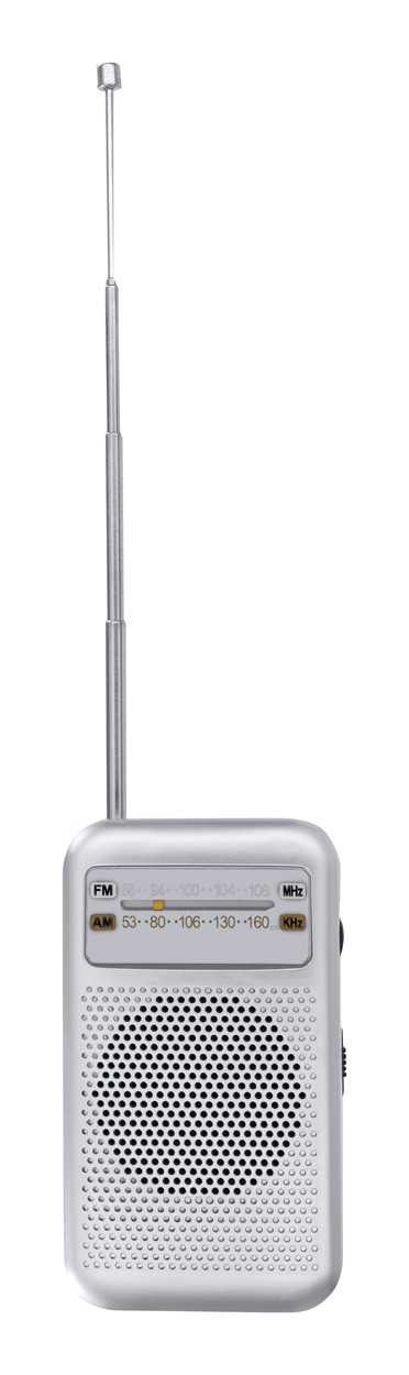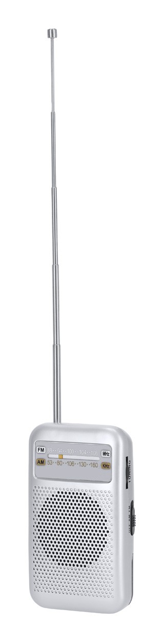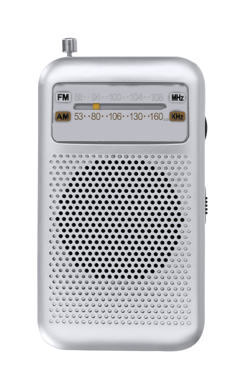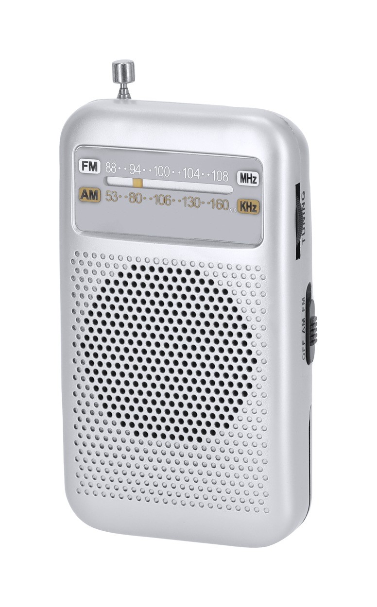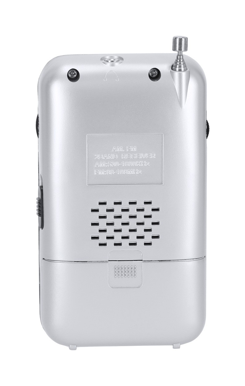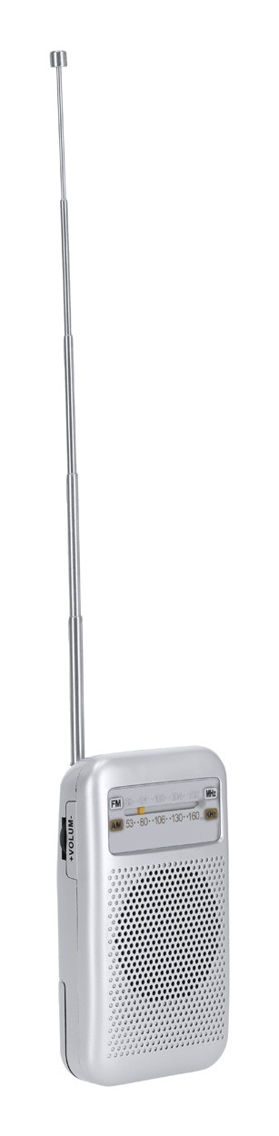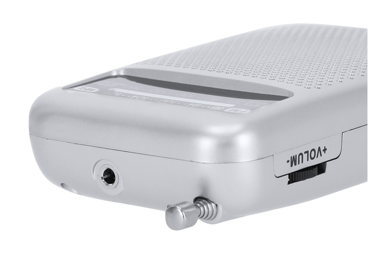 Radio FM cu design vintage, cu antenă extensibilă și difuzor. Cu conexiune jack audio de 3,5 mm. Funcționează cu 3 baterii AA, livrat fără baterii.
