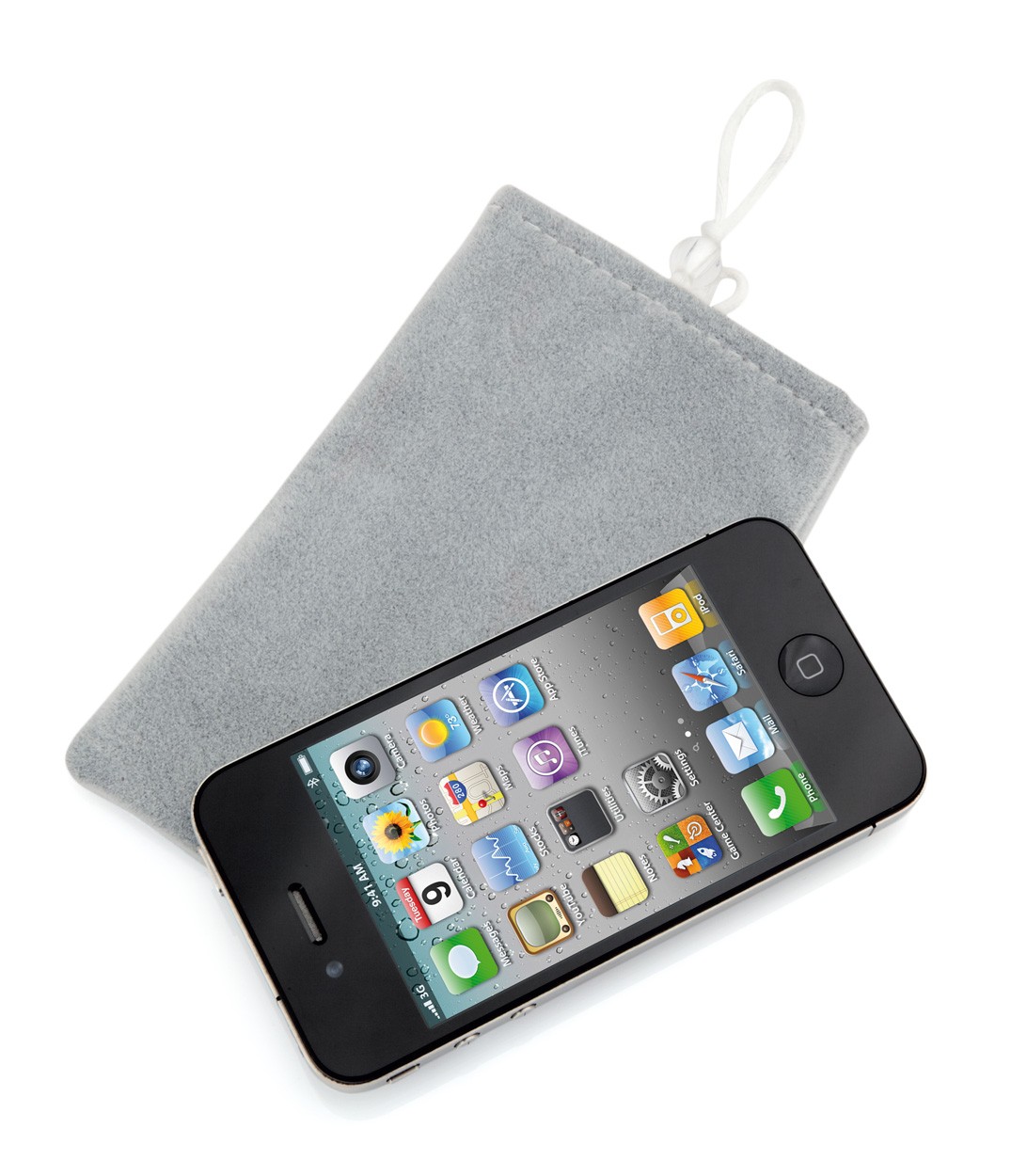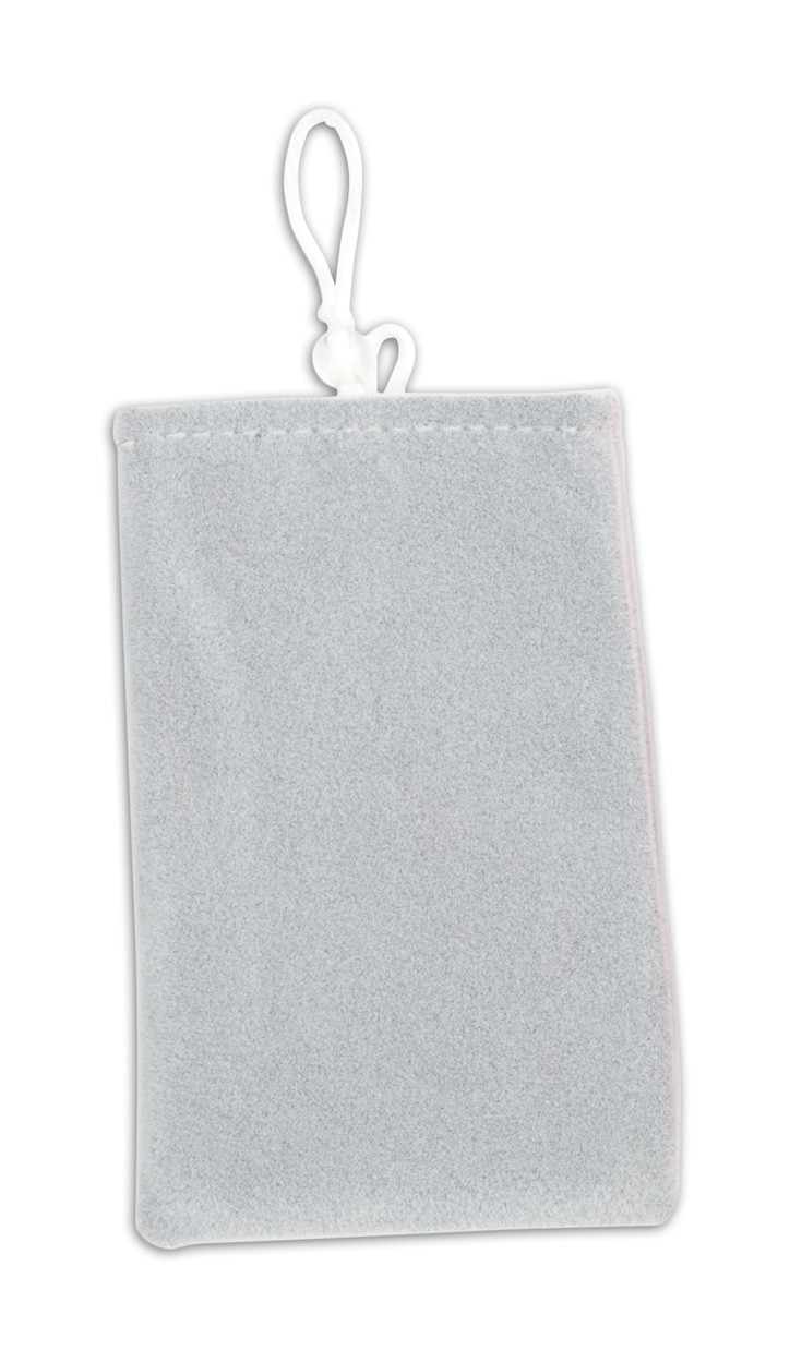 Husă pentru telefon mobil din material cu microfibre, cu şnur.