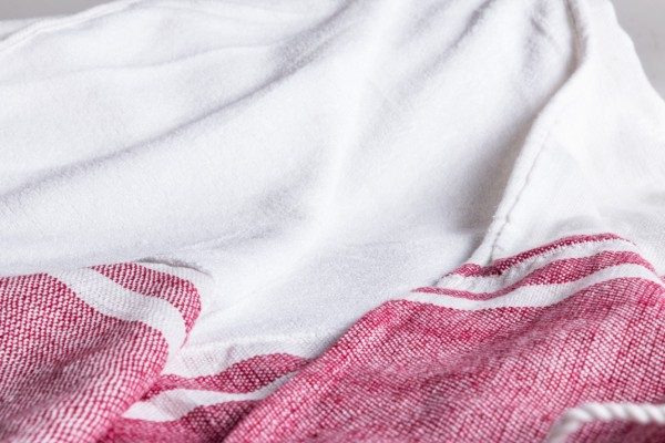 Prosop de plajă cu franjuri și margini colorate, 50% bumbac / 50% poliester.
