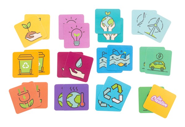 Joc de memorie, din hârtie, cu motive tematice, în cutie de hârtie personalizată. Cu 24 de plăci (55x55 mm). Prețul include imprimarea color pe spatele tuturor plăcilor și o cutie imprimată color. MOQ: 100 buc.