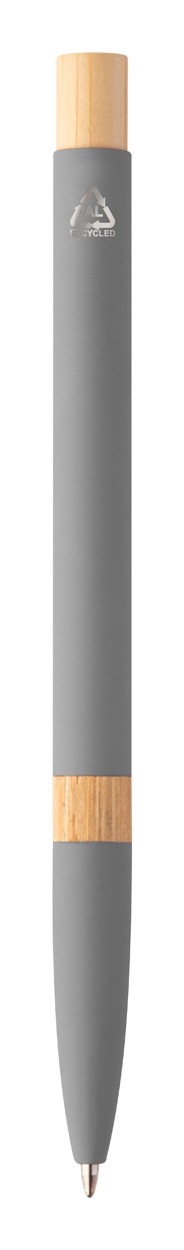 Pix din aluminiu reciclat cu părți din bambus, finisaj cauciucat și clemă cromată. Cu acoperire specială pentru gravarea laser în oglindă. Cu mină albastră.