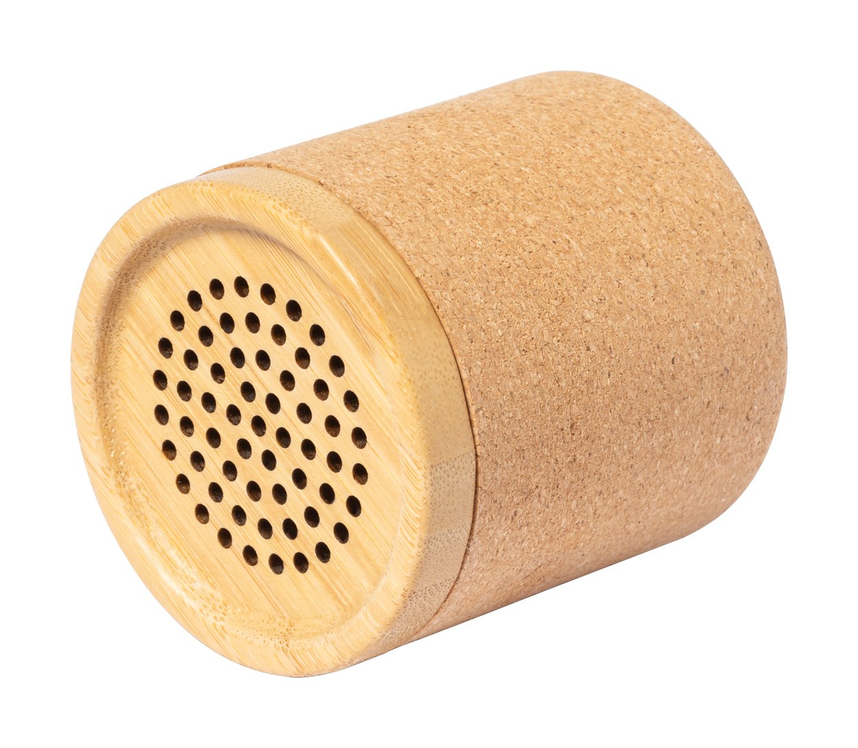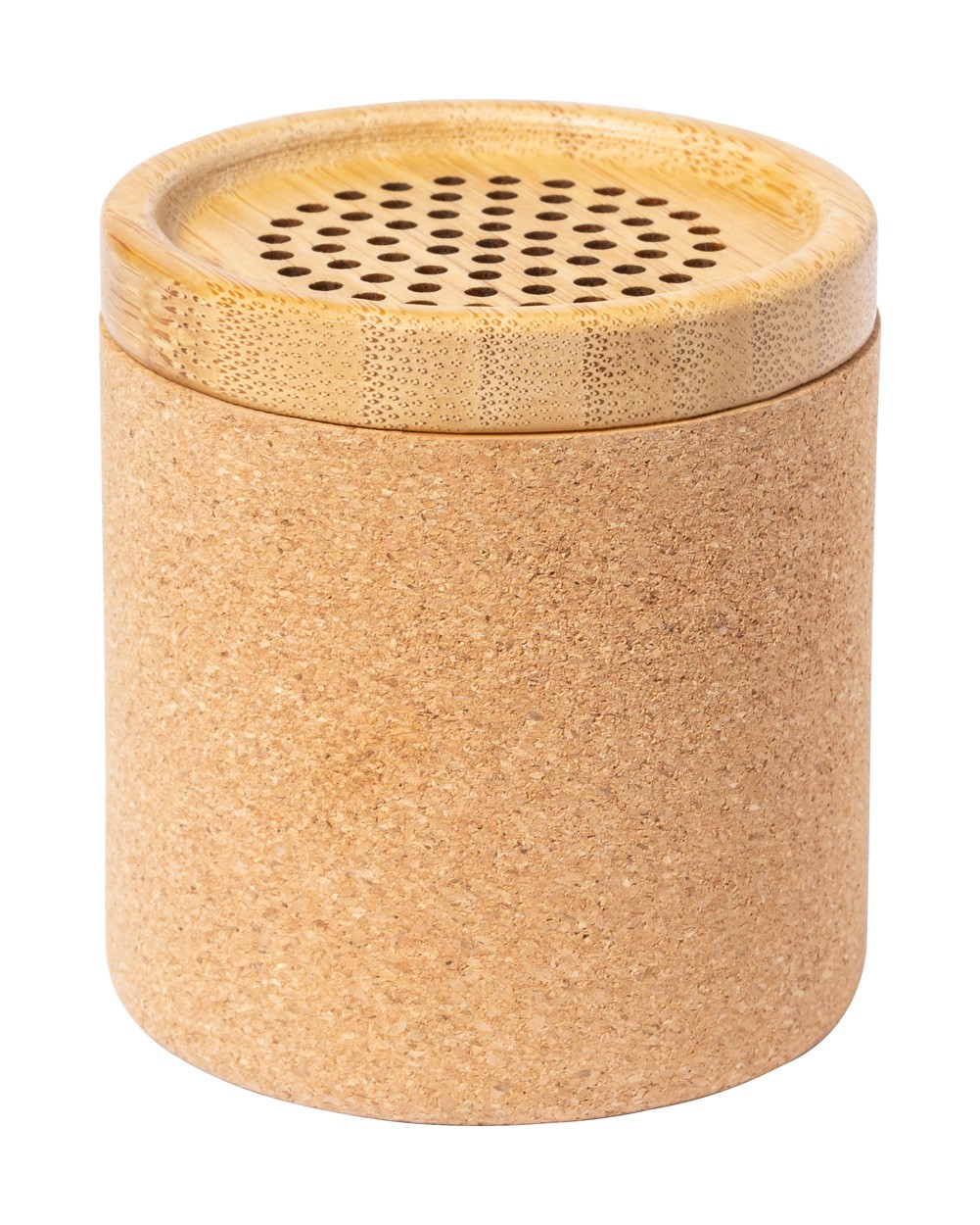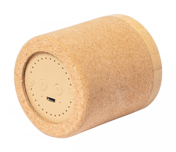 Boxă portabilă din plută naturală și carcasă din bambus, cu baterie reîncărcabilă încorporată. Inclusiv cablu de încărcare USB.