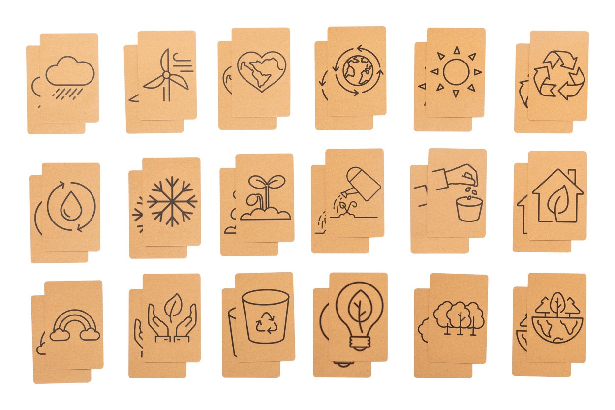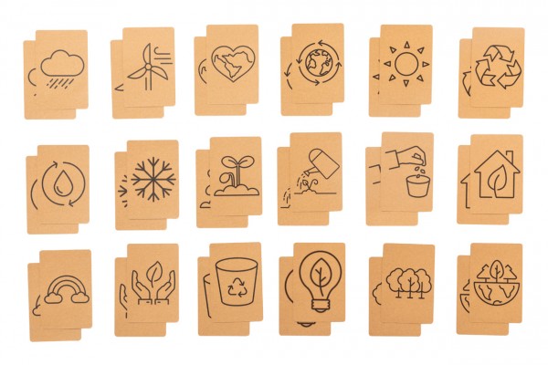 Joc de memorie, din carton reciclat, cu 36 de piese și design tematic pentru protecția mediului. În cutie de carton reciclat.