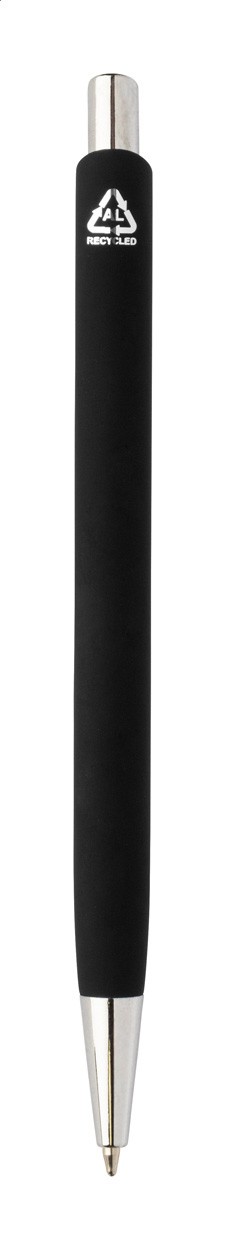 Set cadou din 2 piese, în cutie cadou din hârtie neagră. Include pix din aluminiu reciclat cu finisaj cauciucat și mină albastră și breloc din oțel inoxidabil reciclat cu finisaj cauciucat. Ambele articole au un strat special pentru gravarea cu laser în oglindă.