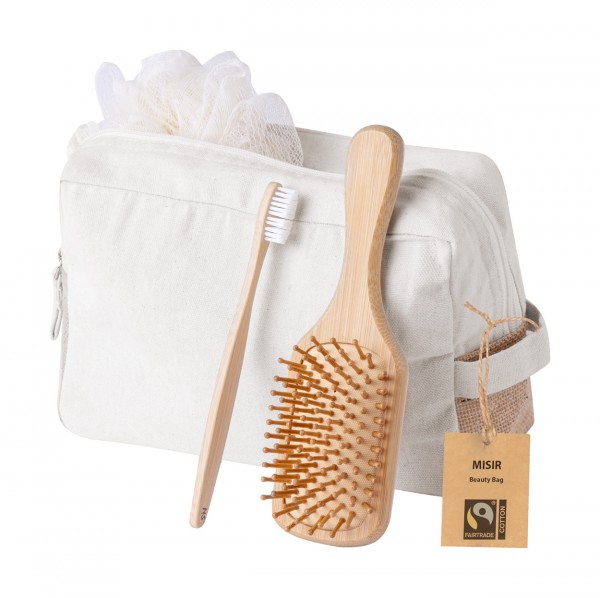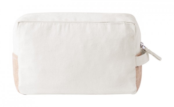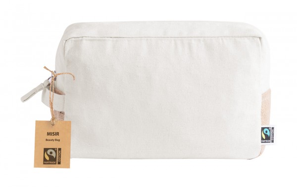 Geantă cosmetică cu fermoar, din iută laminată și bumbac Fairtrade, cu etichetă distinctă Fairtrade.