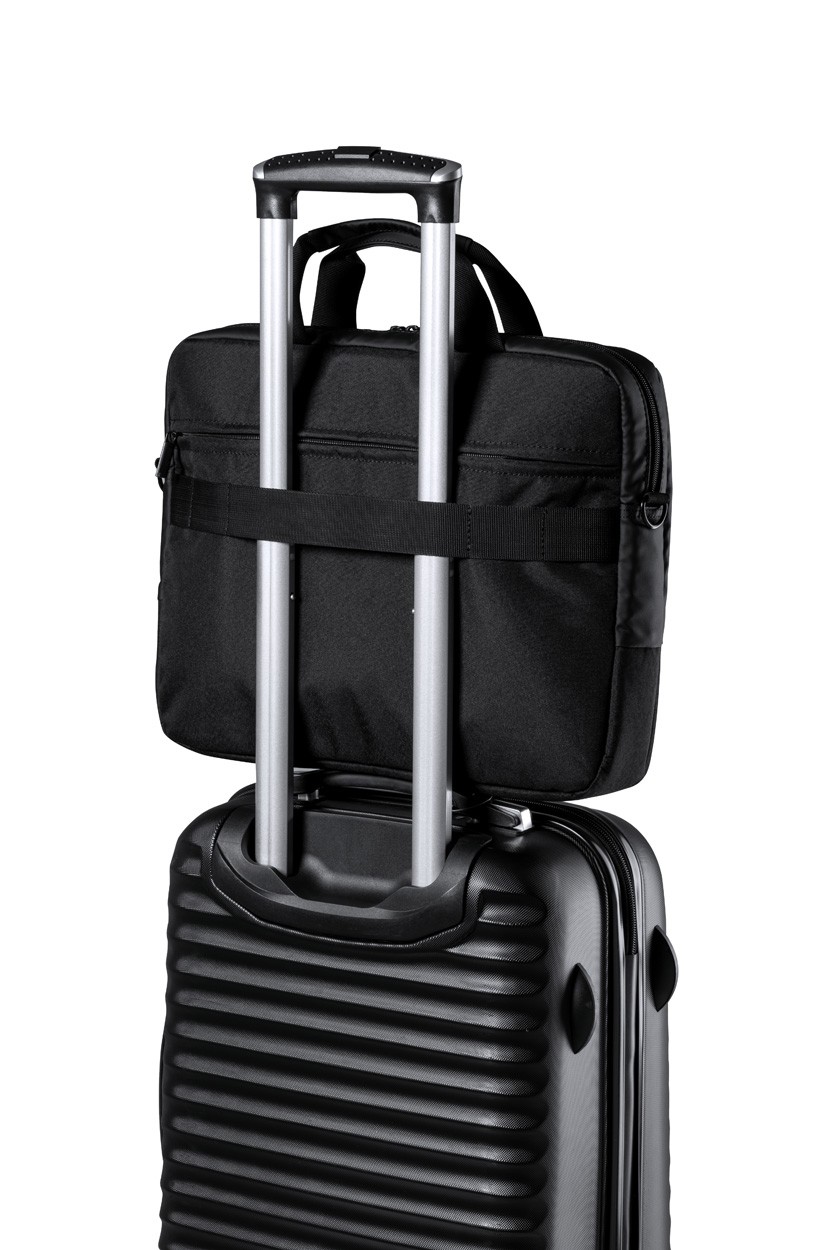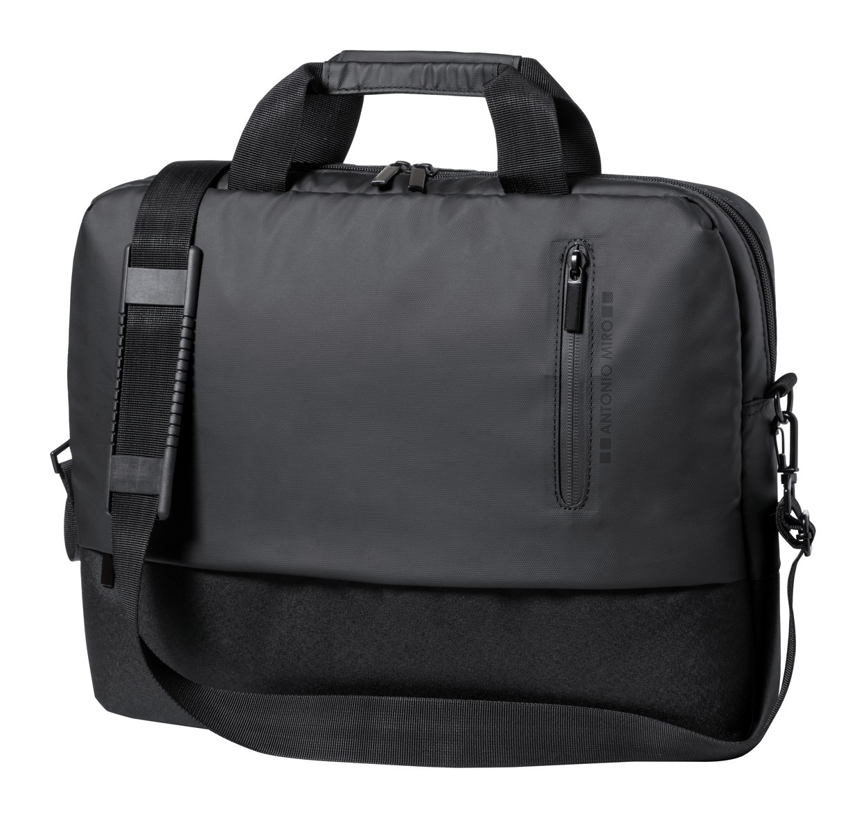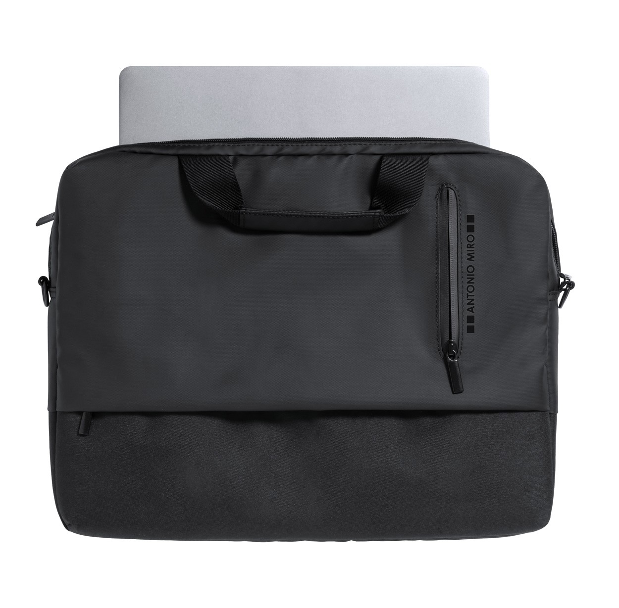 Geantă documente de calitate premium, cu compartiment căptușit pentru laptop (15"), curea pentru troler, mâner de transport ranforsat și buzunar frontal. Poliester 600D. Produs marca Antonio Miro.