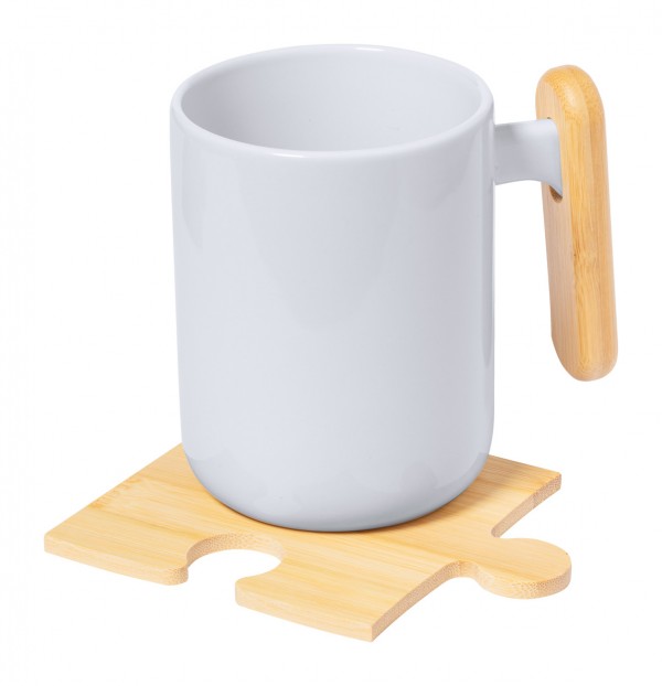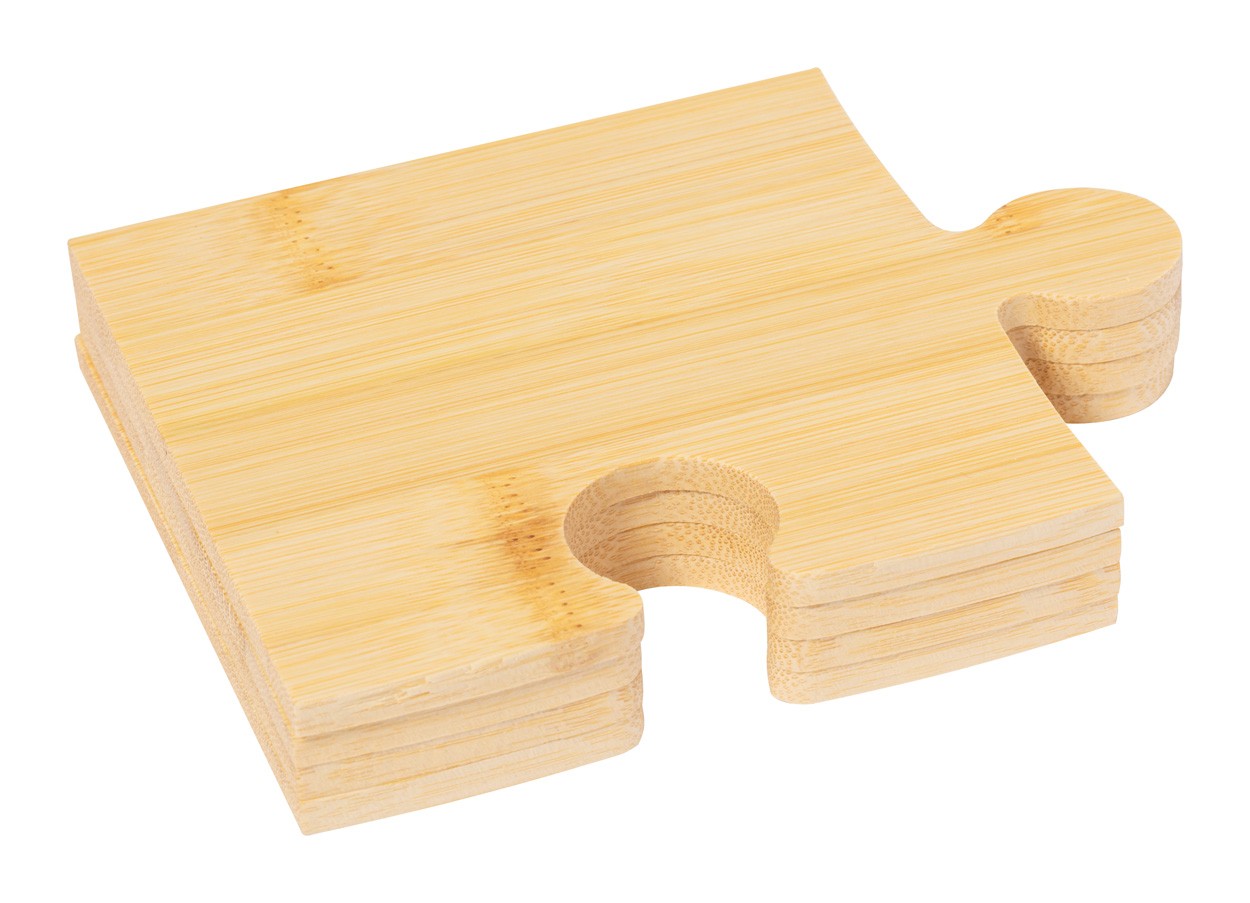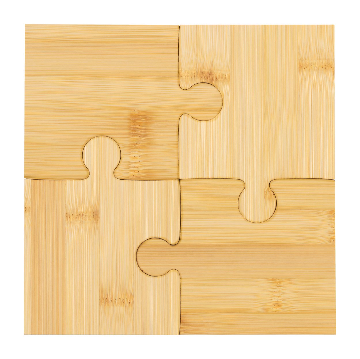 Set de 4 bucăți de coaster, din bambus, în formă de puzzle.