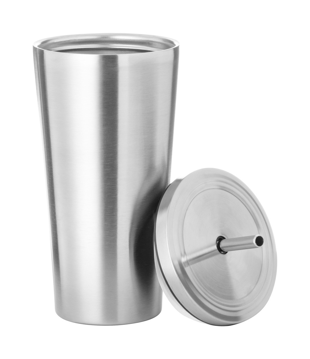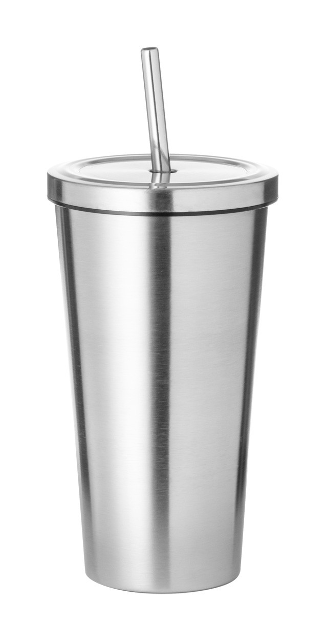 Cană termică, cu perete dublu, din oțel inoxidabil cu paie de băut, 600 ml.
