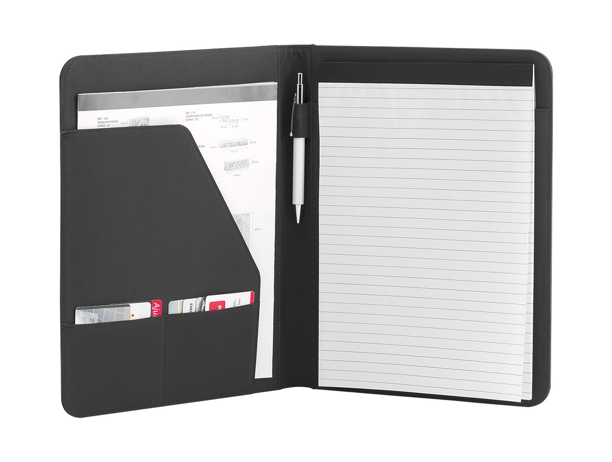 Mapă documente cu sistem de blocare, curea din cauciuc şi blocnotes cu 20 de pagini. Fără pix.